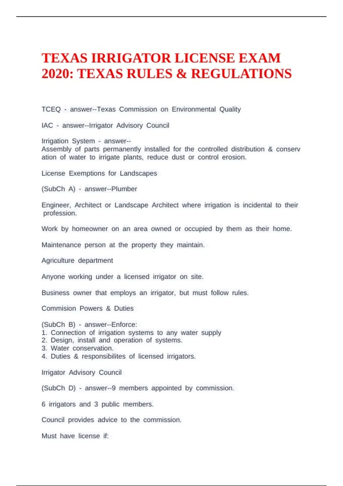 2020: TEXAS RULES & REGULATIONS