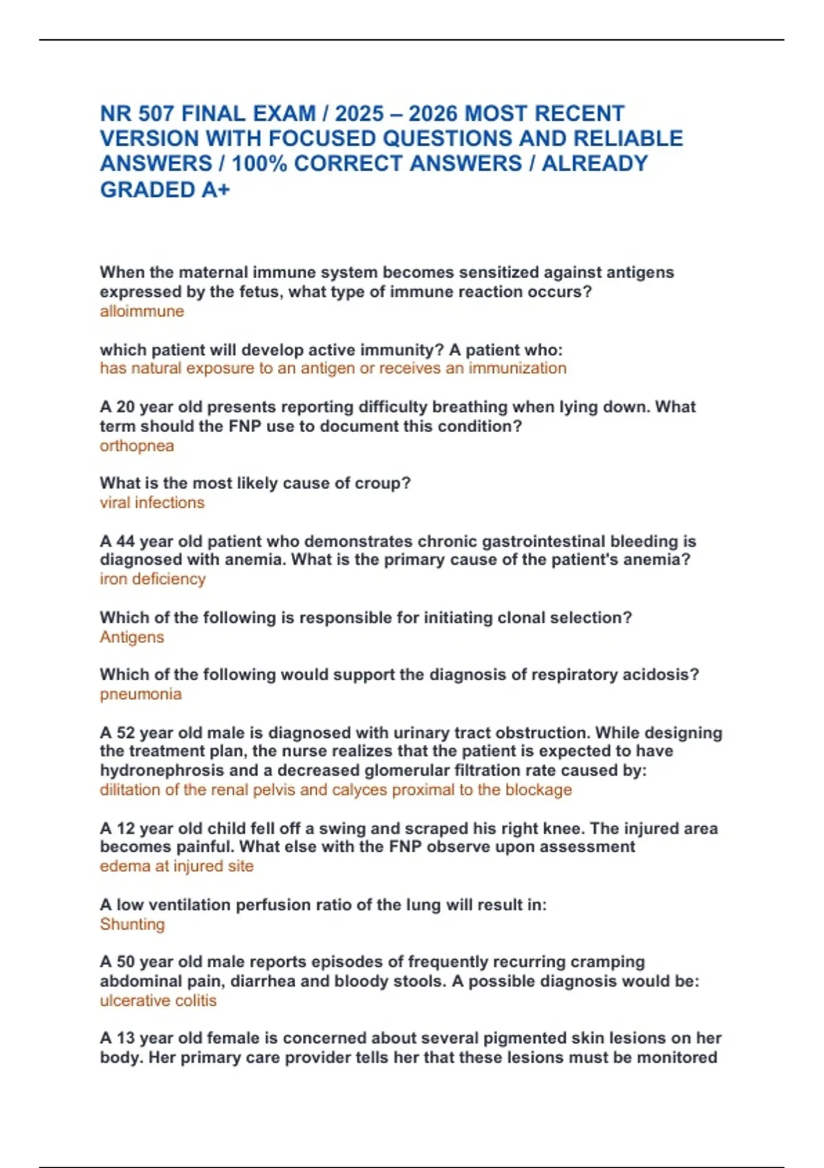 NR 507 FINAL EXAM / 2025 – 2026 MOST RECENT VERSION WITH FOCUSED QUESTIONS AND RELIABLE ANSWERS / 100% CORRECT ANSWERS / ALREADY GRADED A+