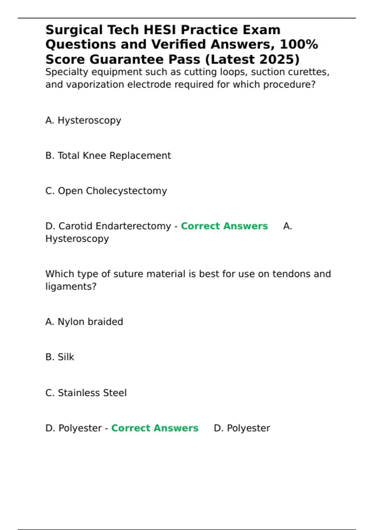 D. Carotid Endarterectomy - Correct Answers ✅A.