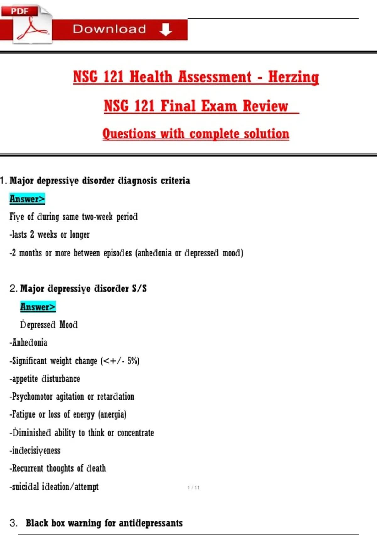 1. Major depressiṿe disorder ḋiagnosis criteria