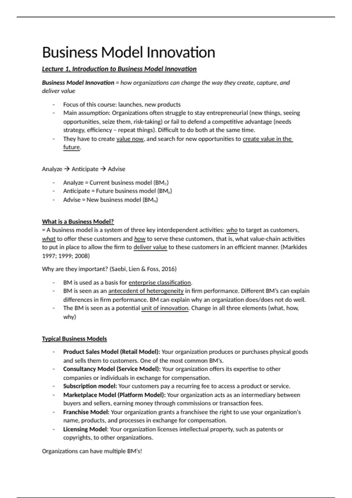 Detailed Summary of Business Model Innovation: Strategic and Organizational Issues for