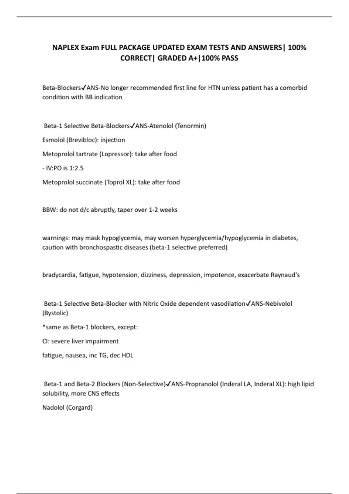 Beta-1 Selective Beta-Blockers✔ANS-Atenolol (Tenormin)