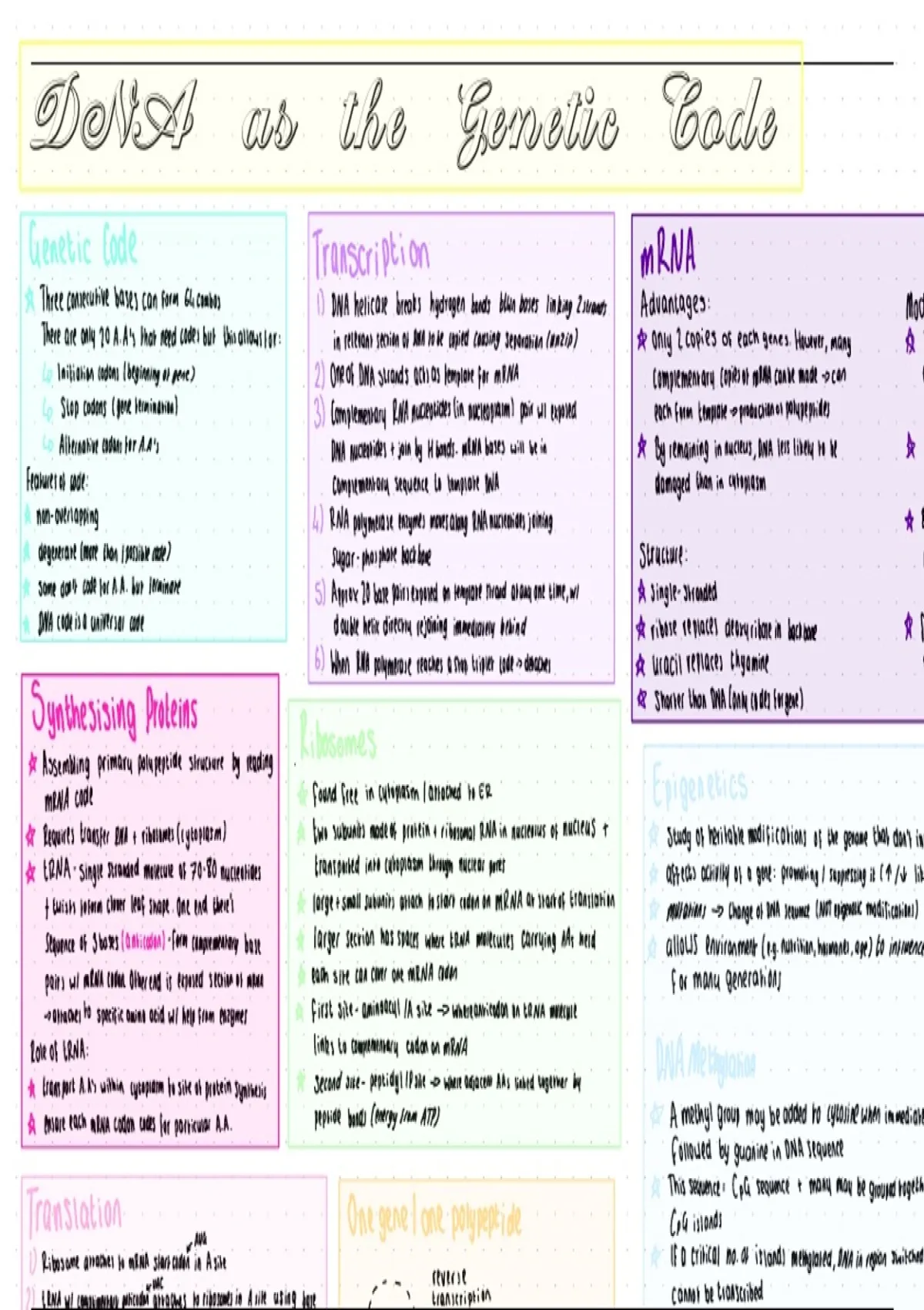 Summarises the DNA as the Genetic Code topic within A2 Biology Unit 2. Good luck!