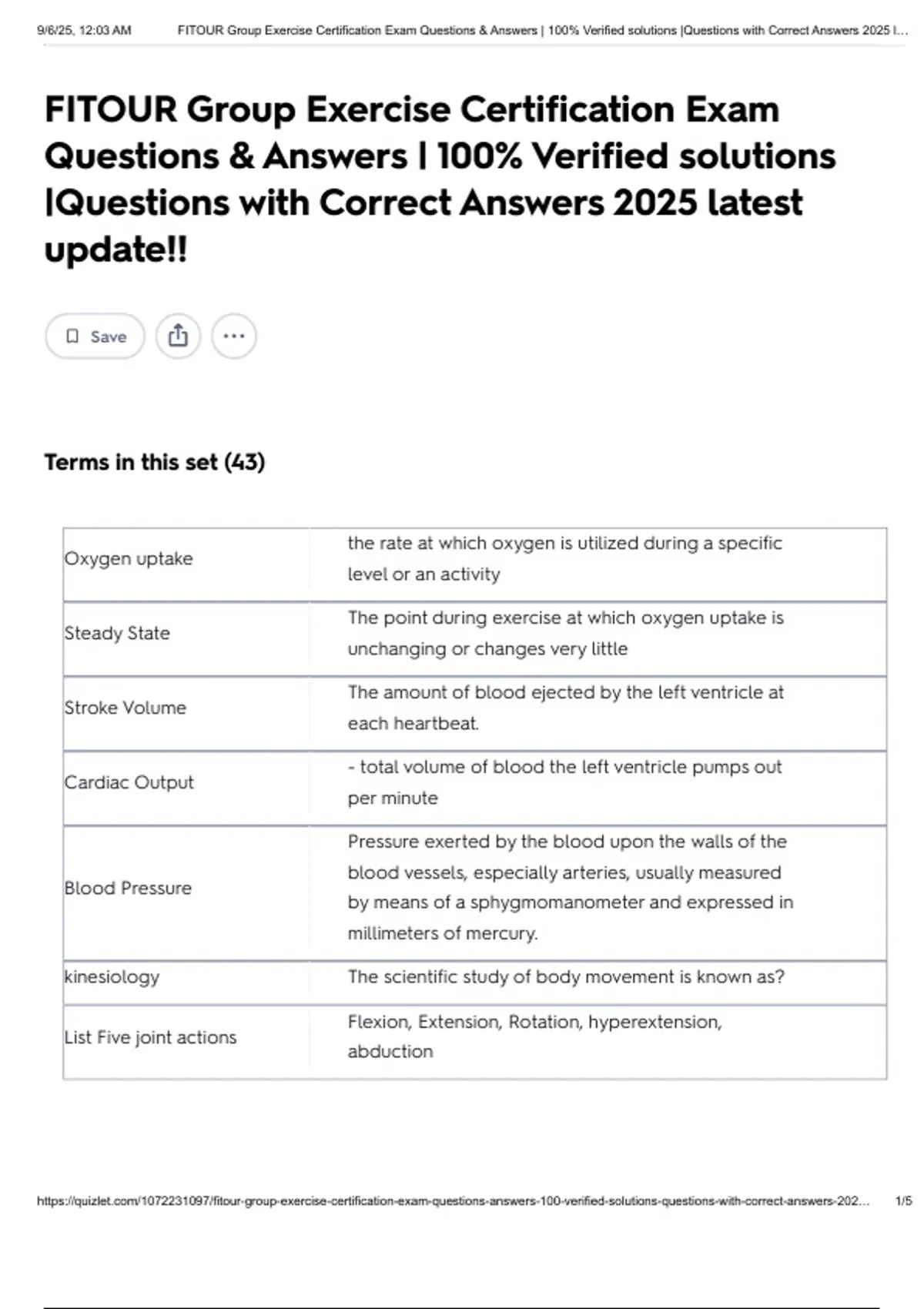 , 9/6/25, 12:03 AM FITOUR Group Exercise Certification Exam Questions & Answers | 100% Verified solutions |Questions with Correct Answers 2025 l…