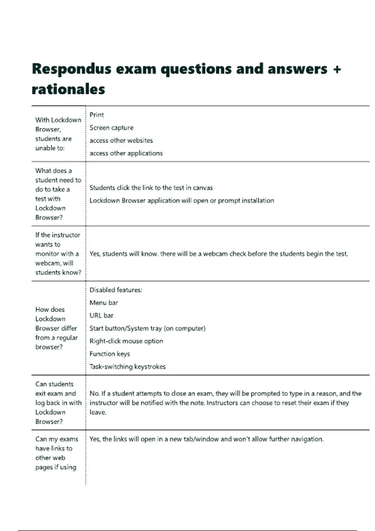 Respondus exam questions and answers + rationales.