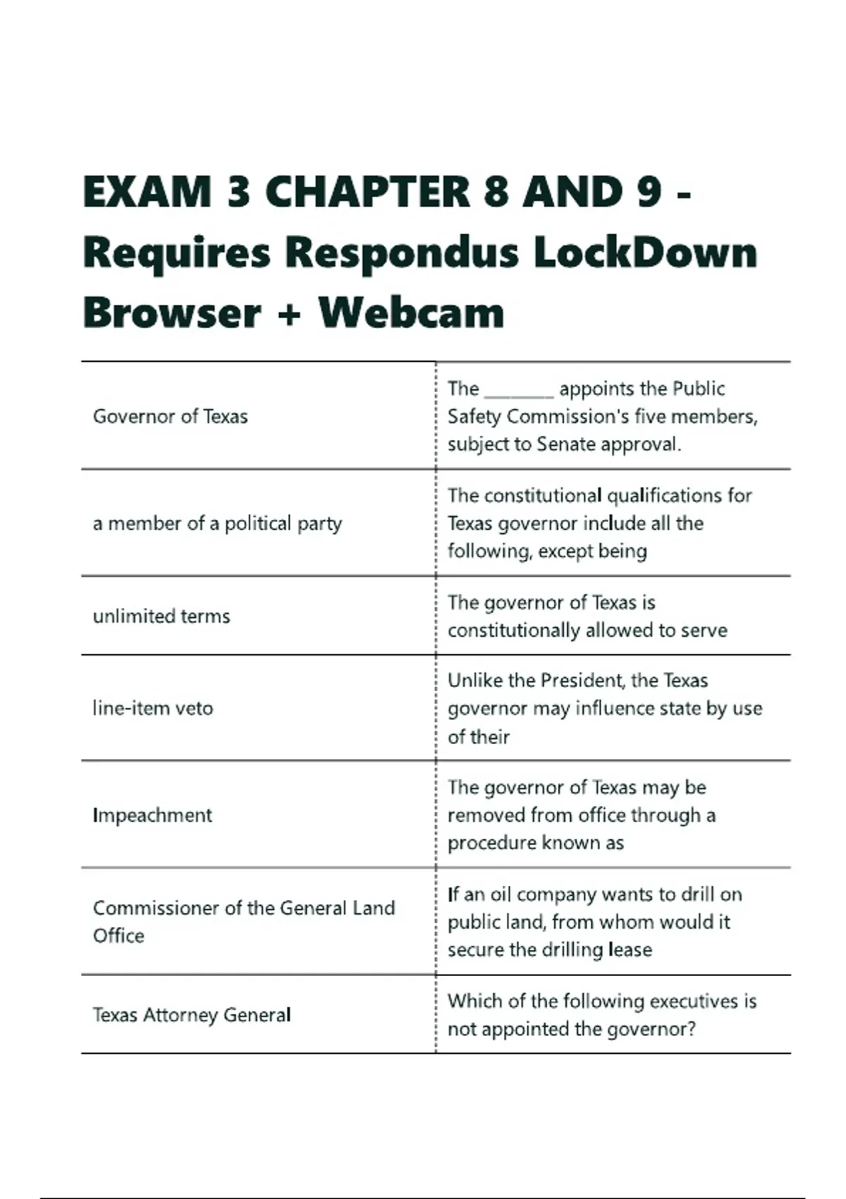 Requires Respondus Lockdown Browser+ Webcam Bundled Exams 2025