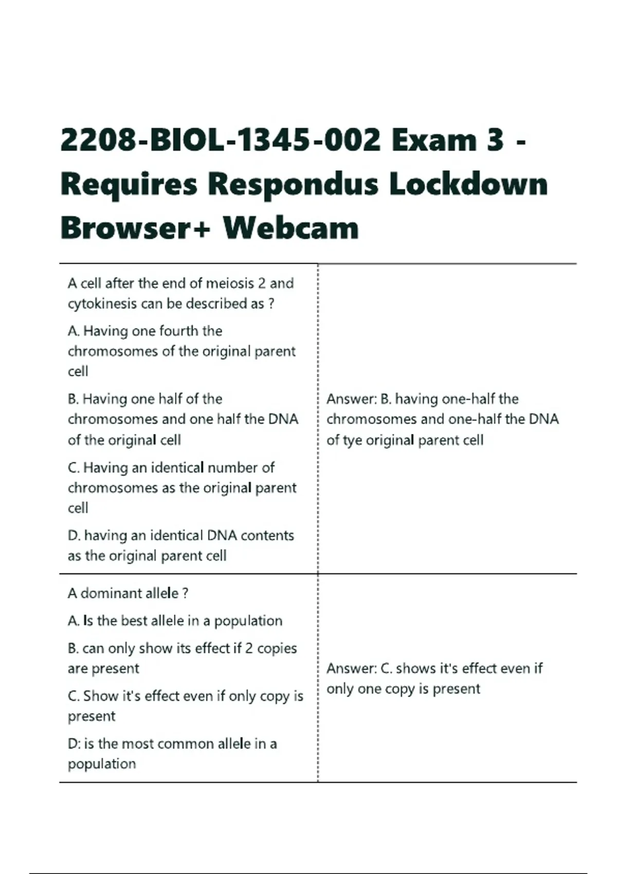2208-BIOL-1345-002 Exam 3 - Requires Respondus Lockdown Browser+ Webcam