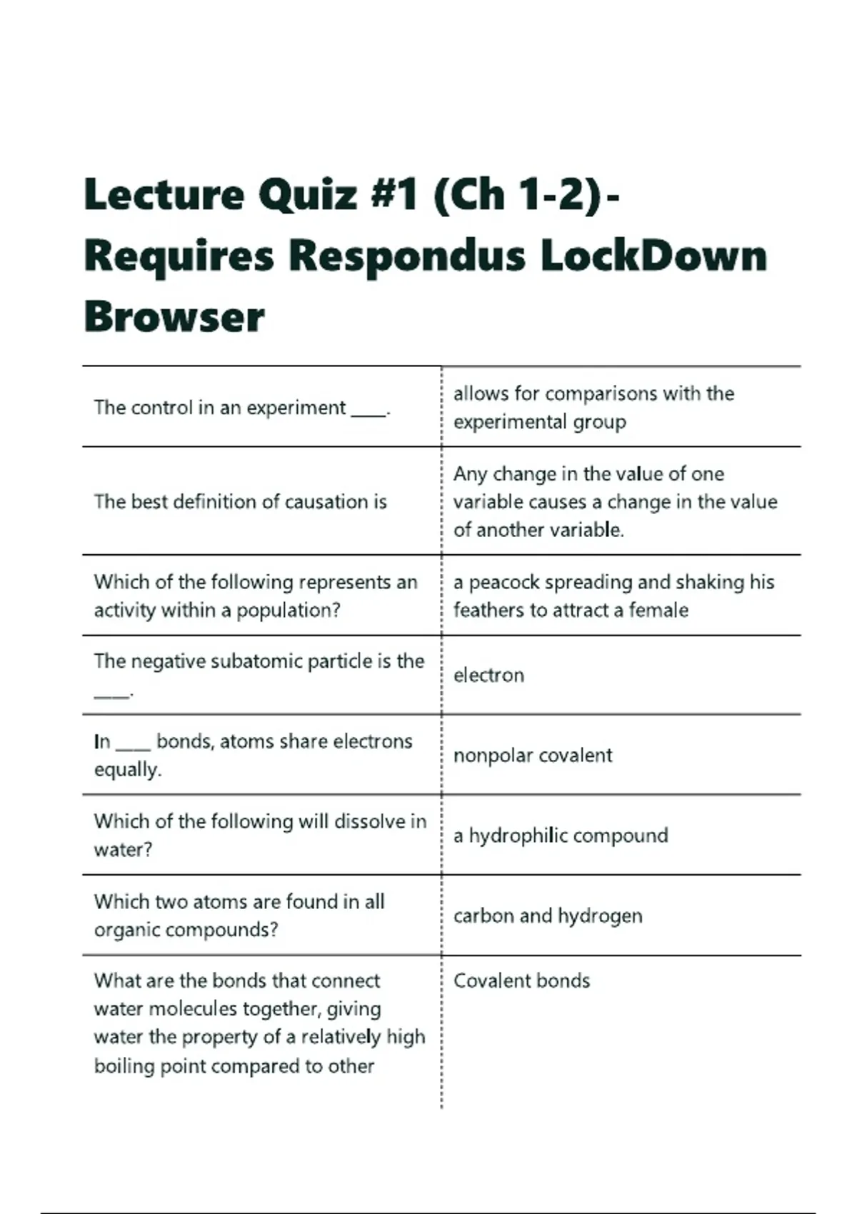Lecture Quiz -1 (Ch 1-2)- Requires Respondus LockDown Browser