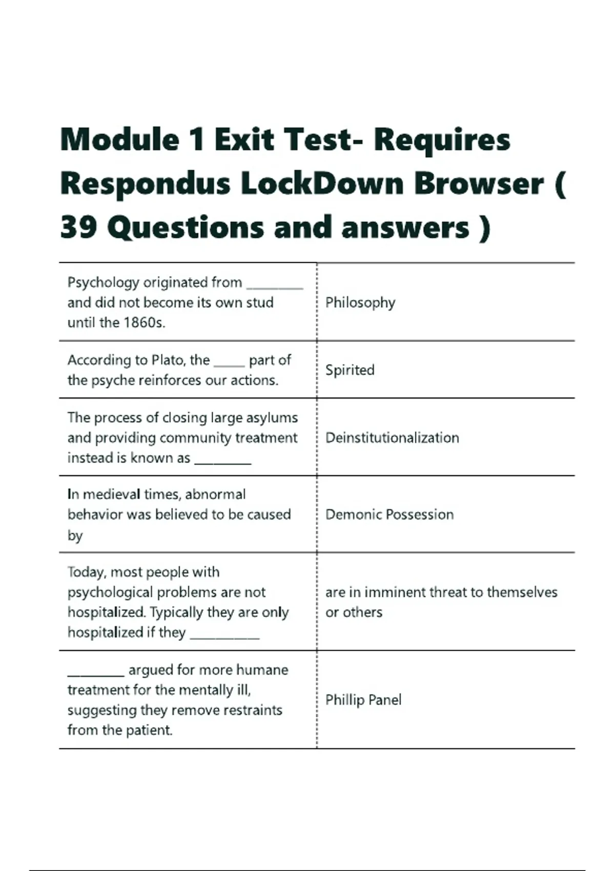 Module 1 Exit Test- Requires Respondus LockDown Browser ( 39 Questions and answers ).