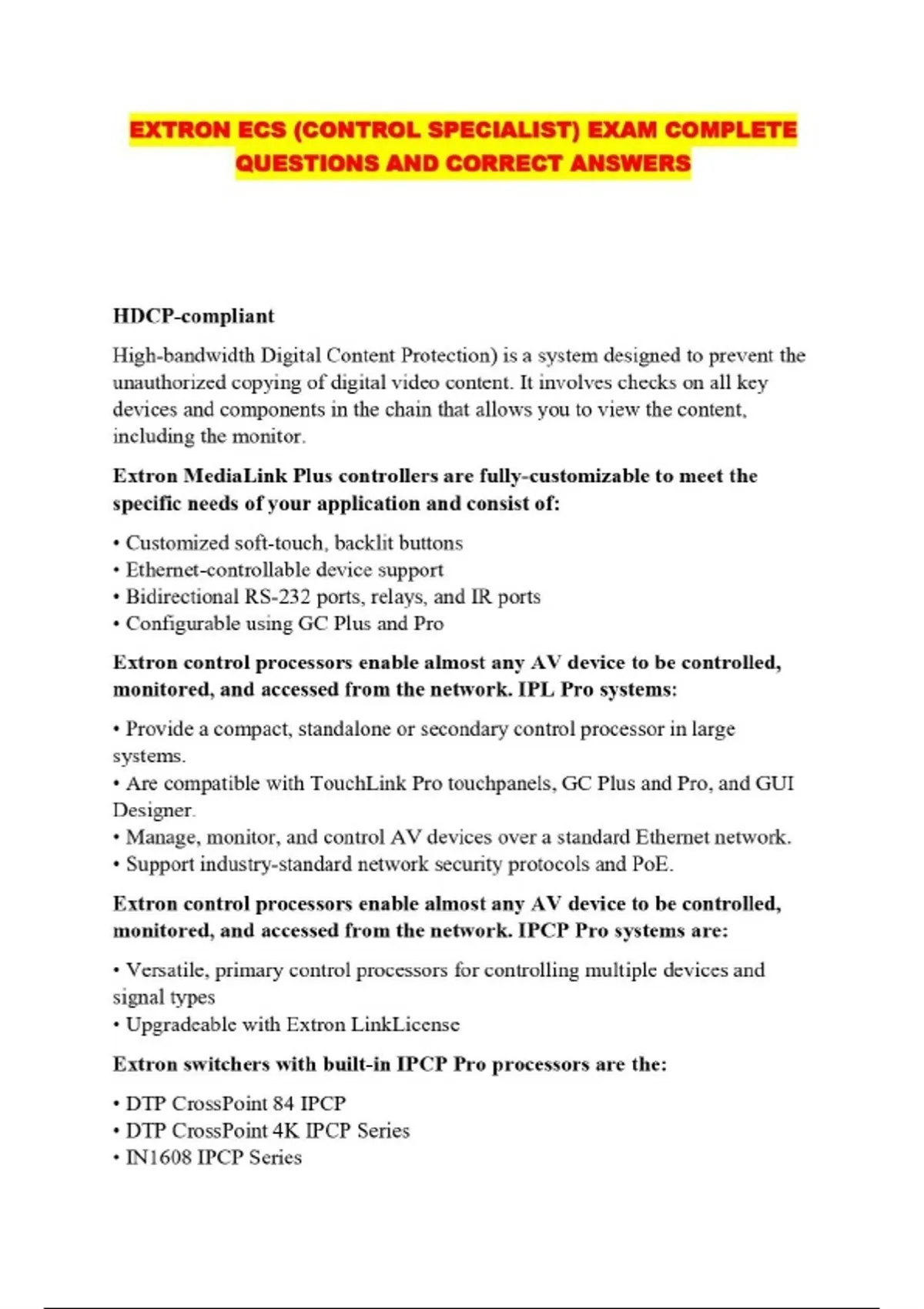 EXTRON ECS (CONTROL SPECIALIST) EXAM COMPLETE QUESTIONS AND CORRECT ANSWERS....