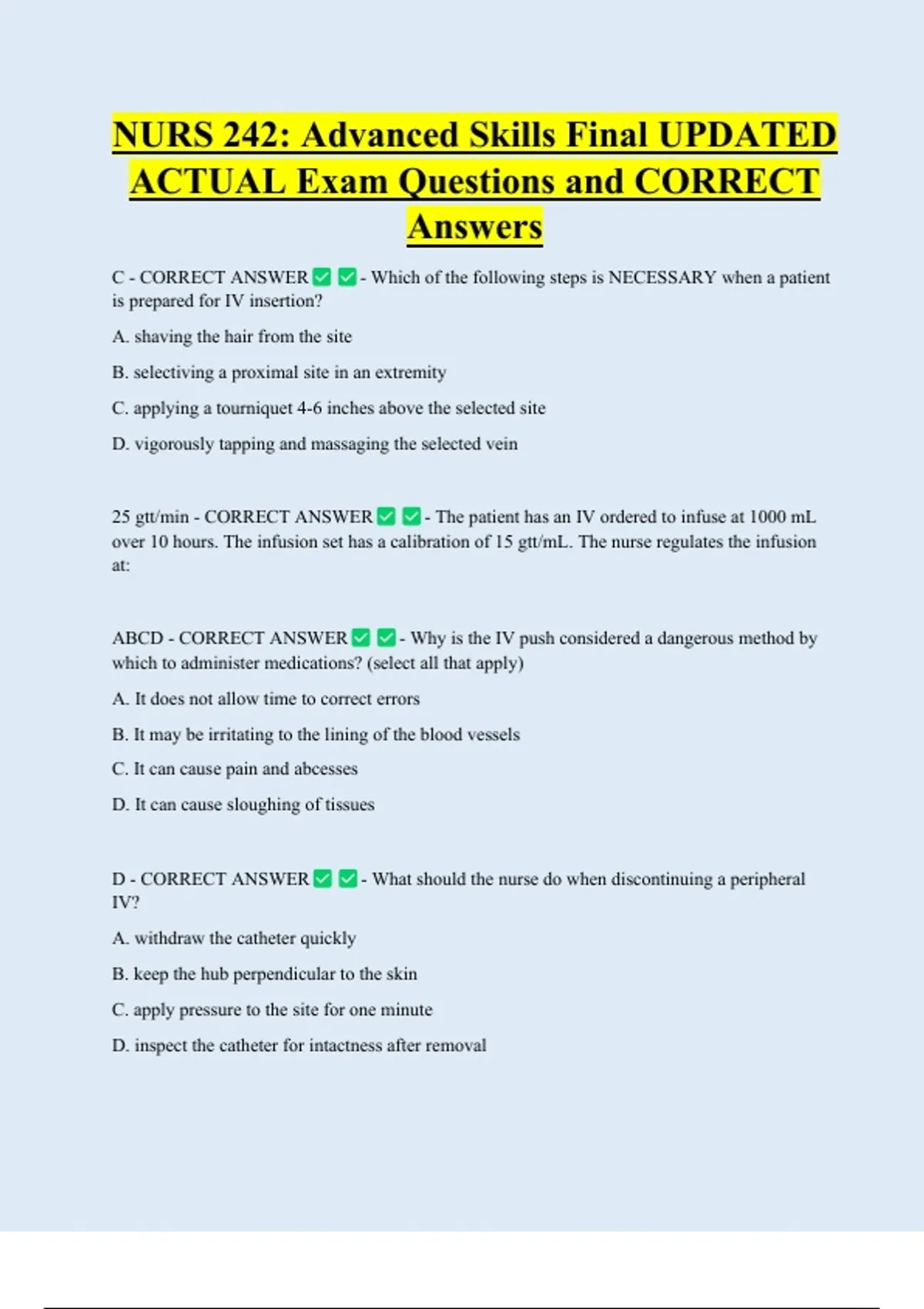 D - CORRECT ANSWER - What should the nurse do when discontinuing a peripheral