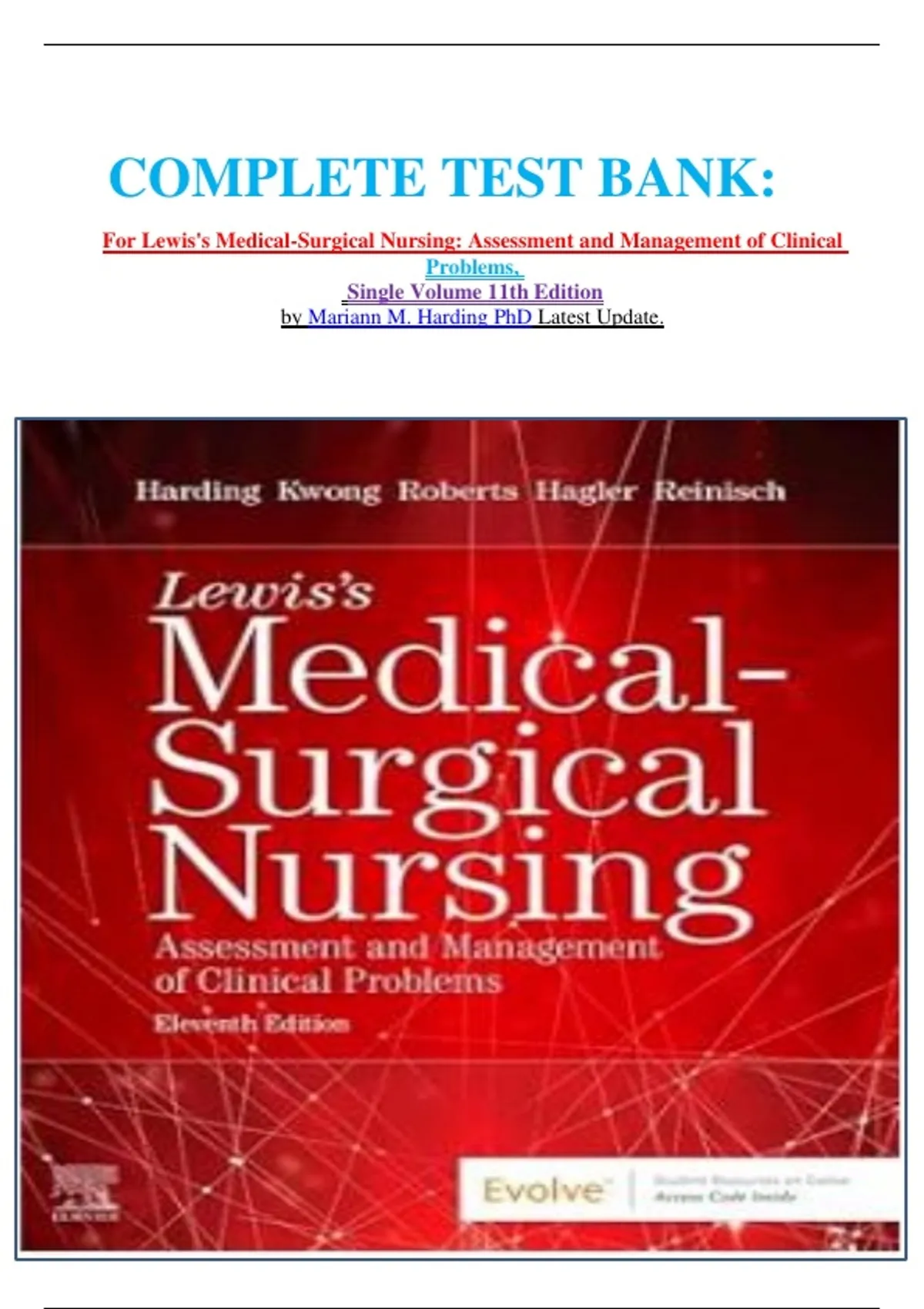 COMPLETE TEST BANK: For Lewis's Medical-Surgical Nursing: Assessment and Management of Clinical Problems, Single Volume 11th Edition by Mariann M. Harding PhD Latest Update.