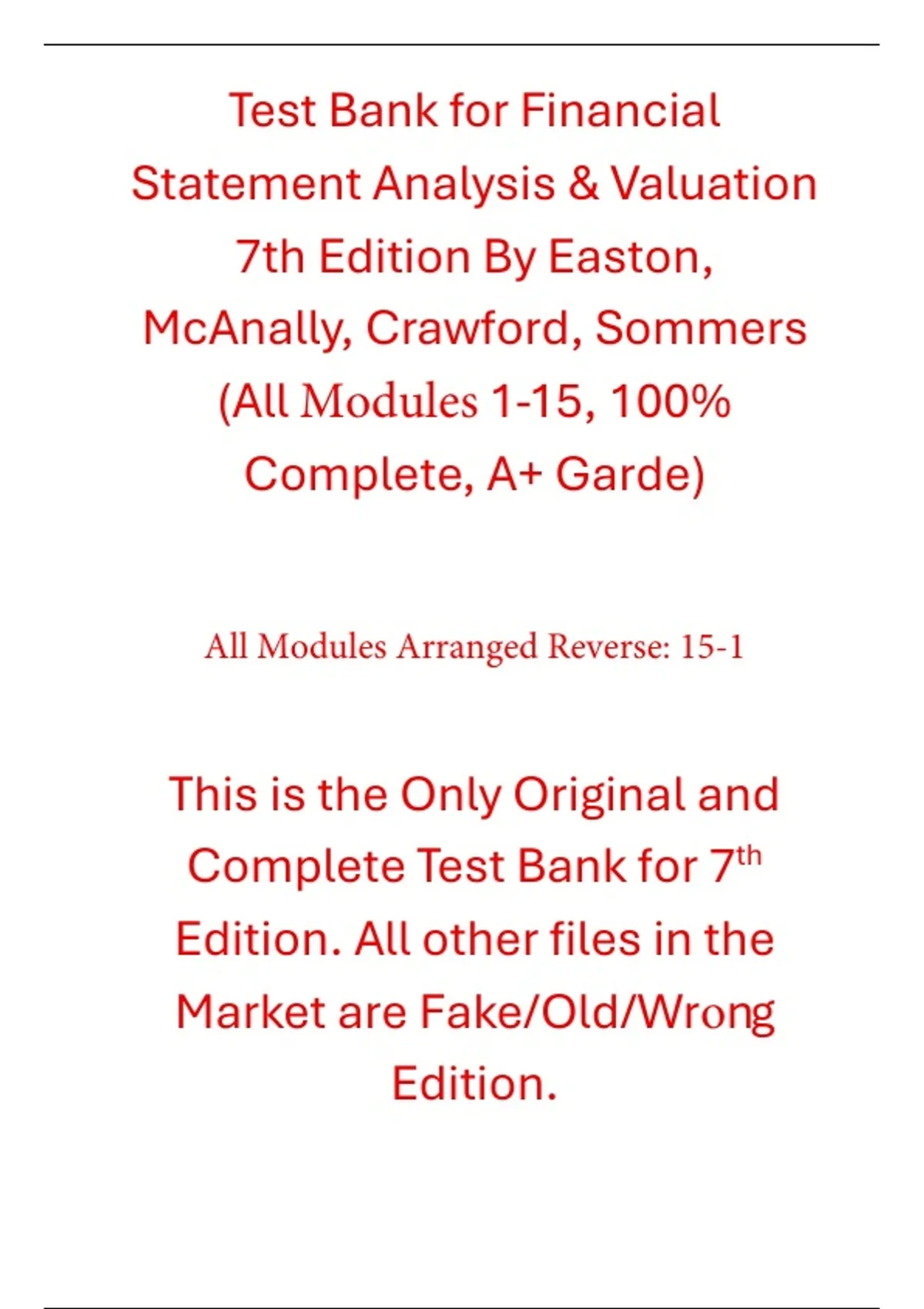 Best Educational Resources for Student. We are The Only Original and Complete Study Resources Provider in the Market. Majority of the Competitors in the Market are Selling Fake/Old/Wrong Edition files with cheap price attraction for customers.