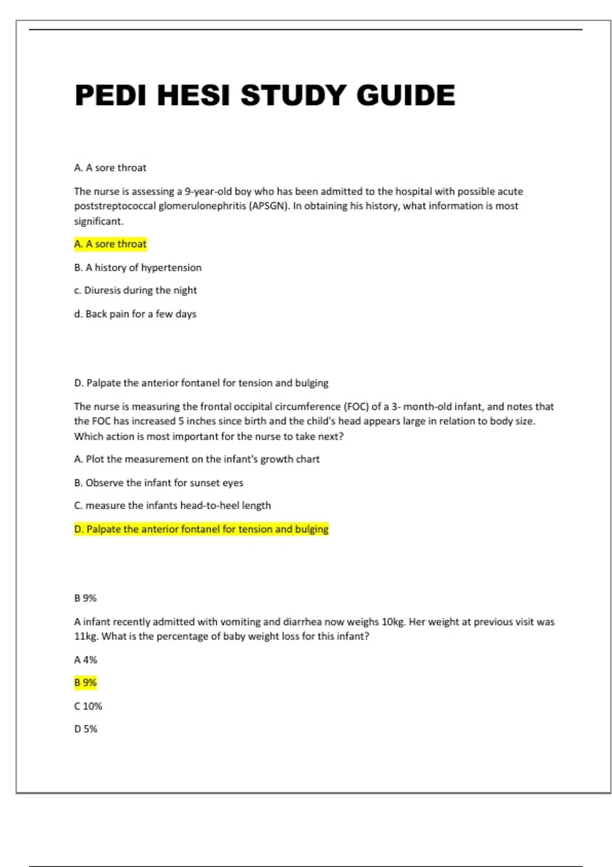 PEDI HESI STUDY GUIDE