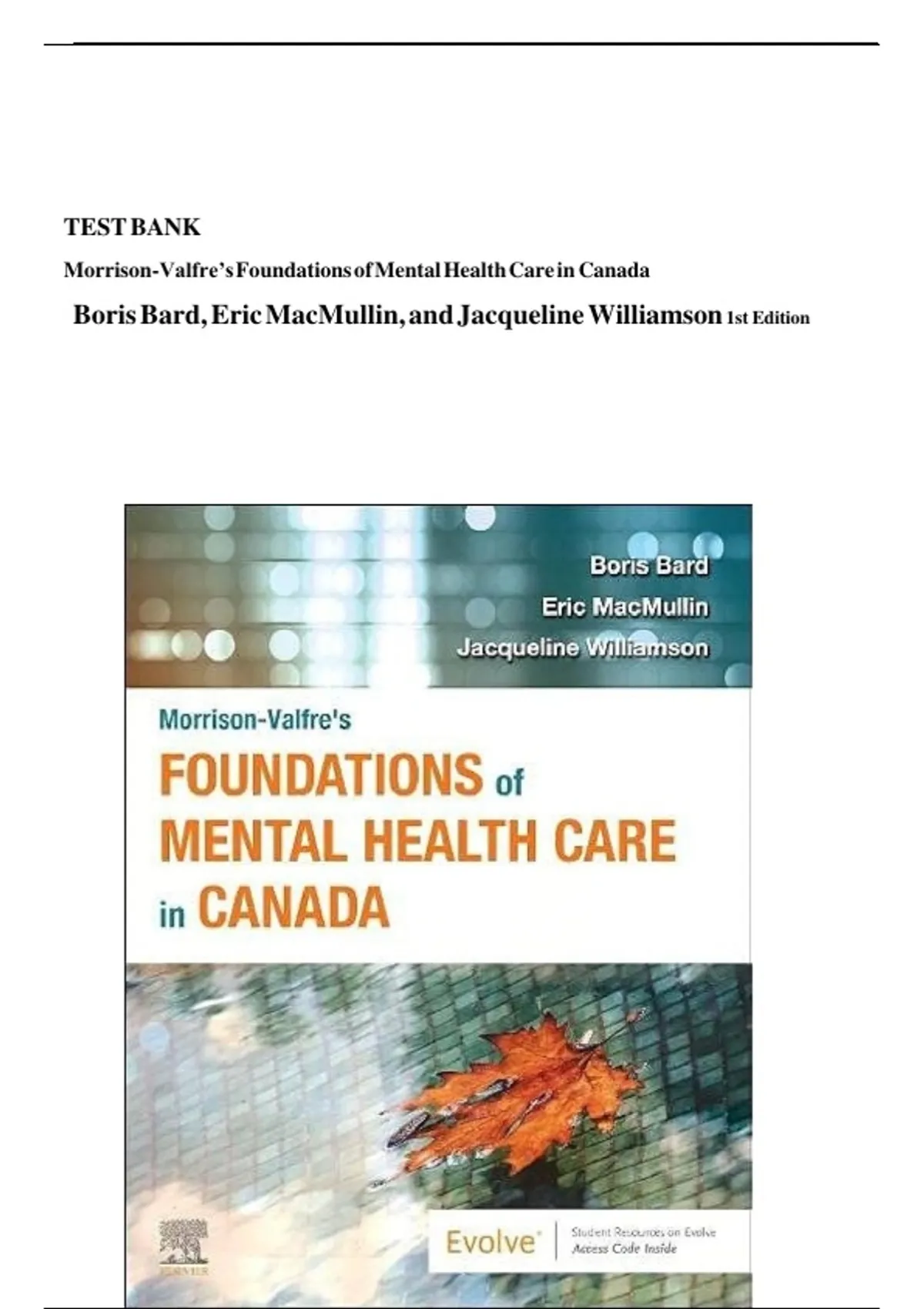 Test Bank - Morrison-Valfre’s Foundations of Mental Health Care in Canada, 1st Edition (Boris Bard-2025)perfect and latest version 2025/26 A+