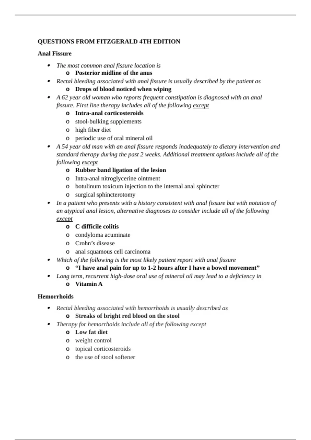 QUESTIONS FROM FITZGERALD 4TH EDITION