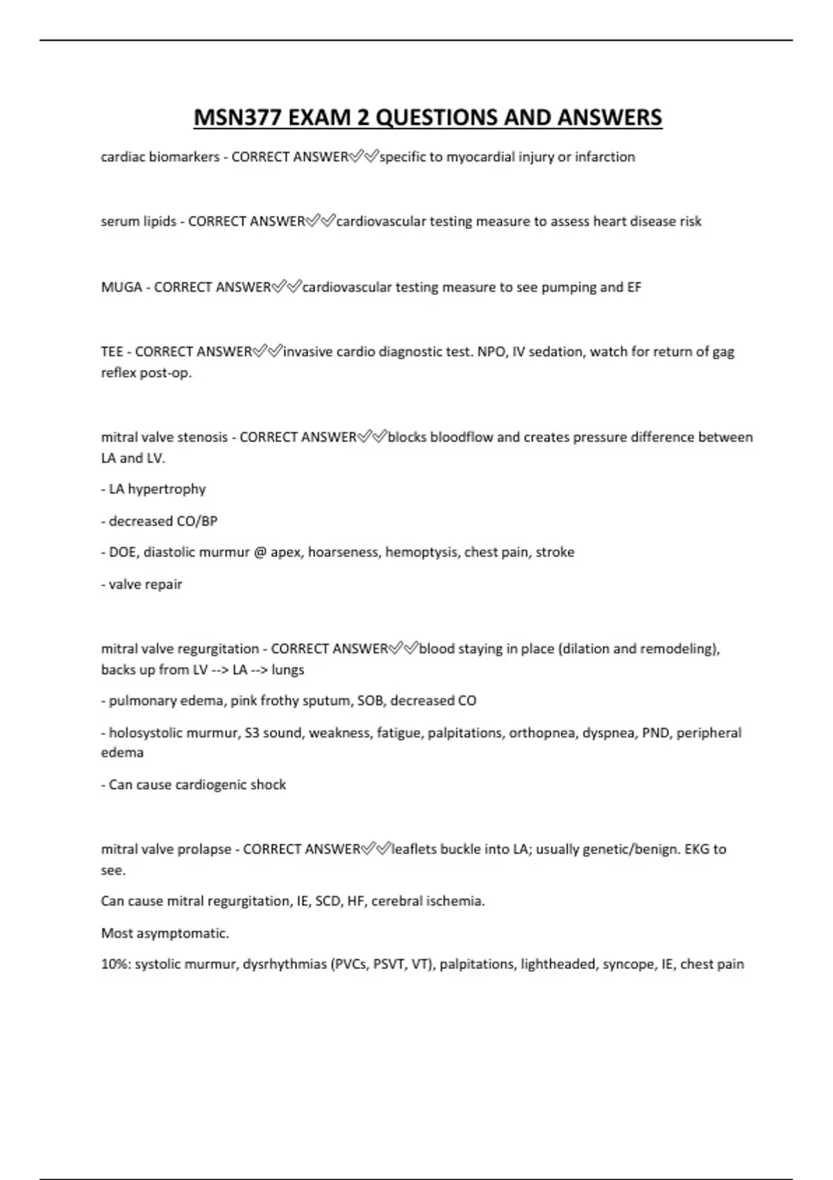 MSN377 EXAM 2 QUESTIONS AND ANSWERS cardiac biomarkers - CORRECT ANSWERspecific to myocardial injury or infarction