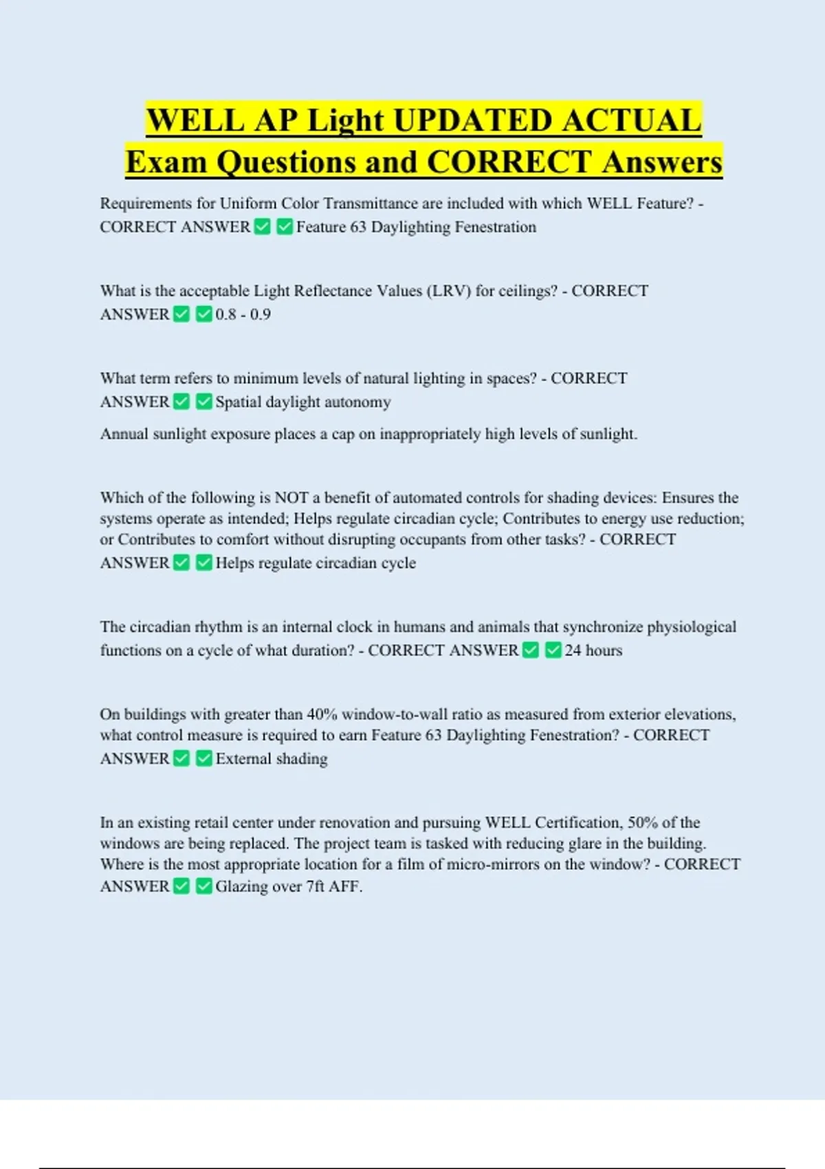 CORRECT ANSWER Feature 63 Daylighting Fenestration