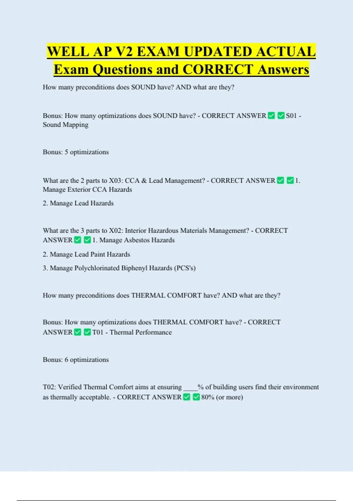 Exam Questions and CORRECT Answers