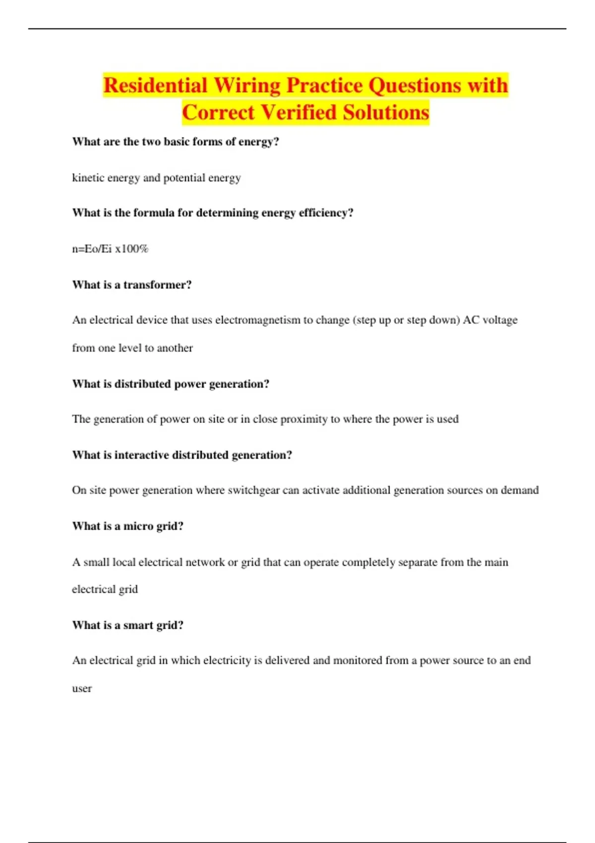 Residential Wiring Practice Questions with