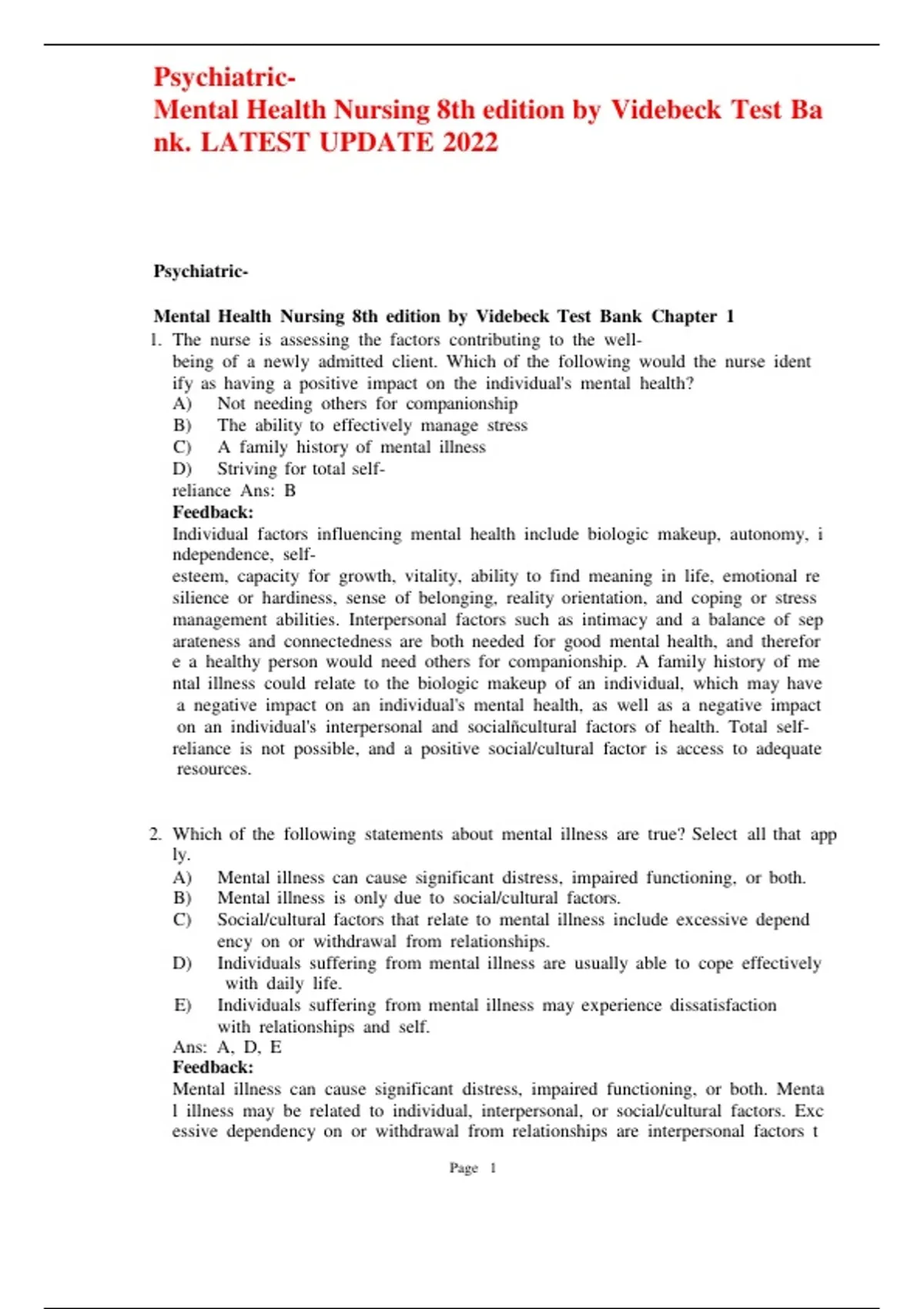 MentalcyHealthcyNursingcy8thcyeditioncybycyVidebeckcyTestcyBankcyChaptercy1