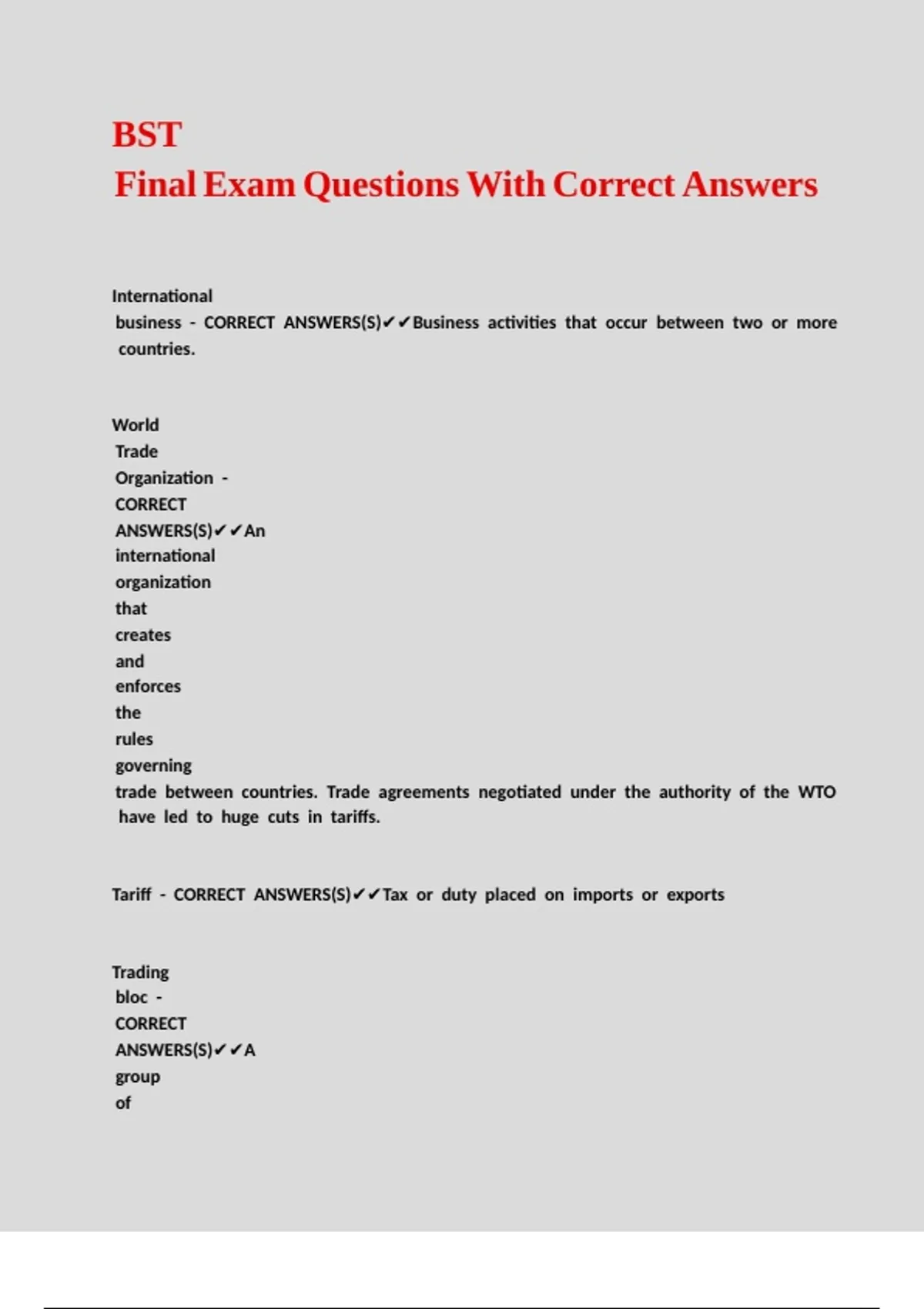 BST Final Exam Questions With Correct Answers.