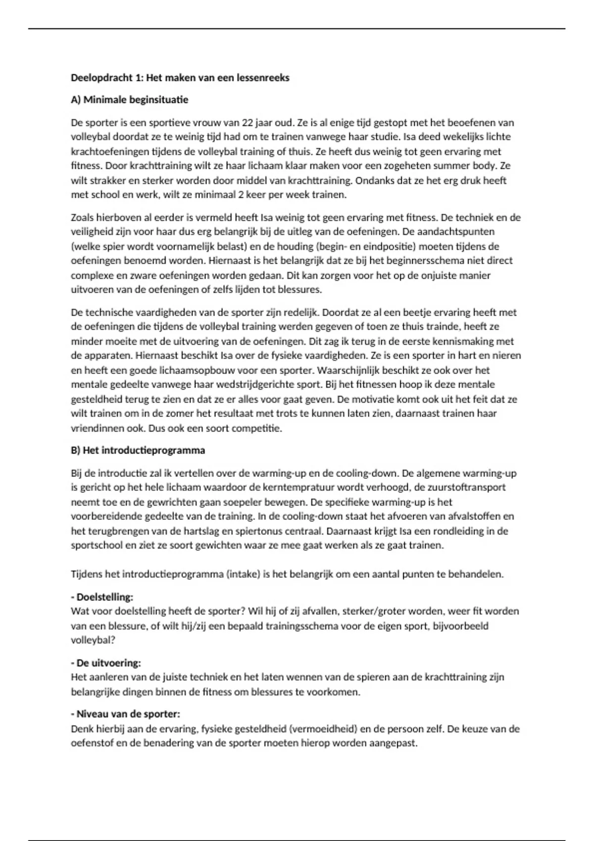 weinig tot geen ervaring met fitness. Door krachttraining wilt ze haar lichaam klaar maken