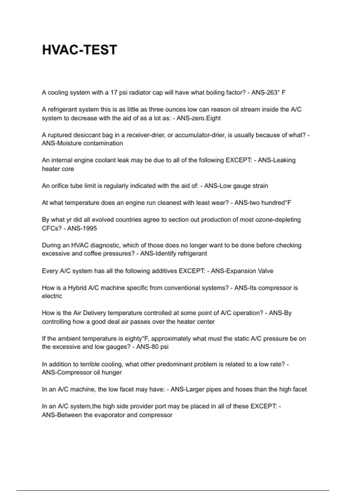 HVAC-TEST NEWEST 2025/2026 ACTUAL EXAM COMPLETE QUESTIONS AND CORRECT DETAILED ANSWERS (VERIFIED ANSWERS) |ALREADY GRADED A+||BRAND NEW!!