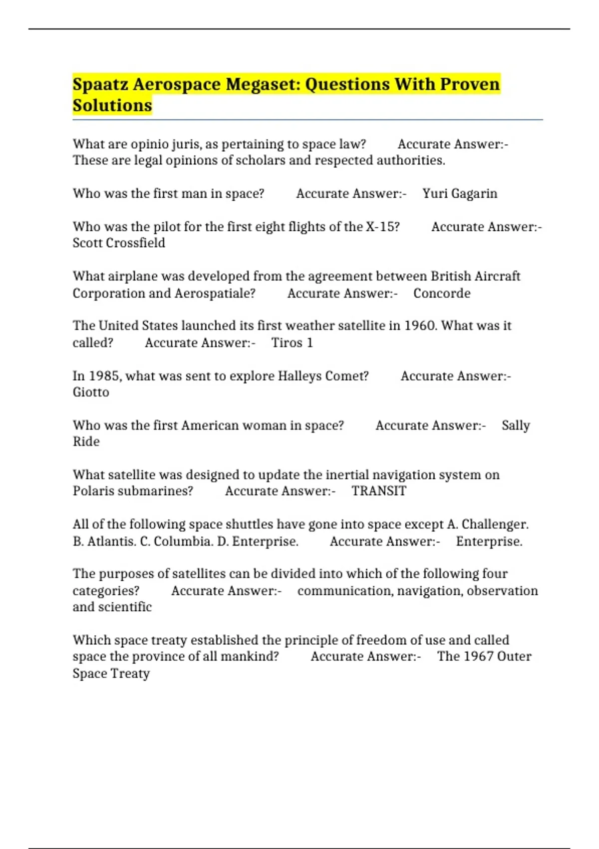 Spaatz Aerospace Megaset: Questions With Proven Solutions