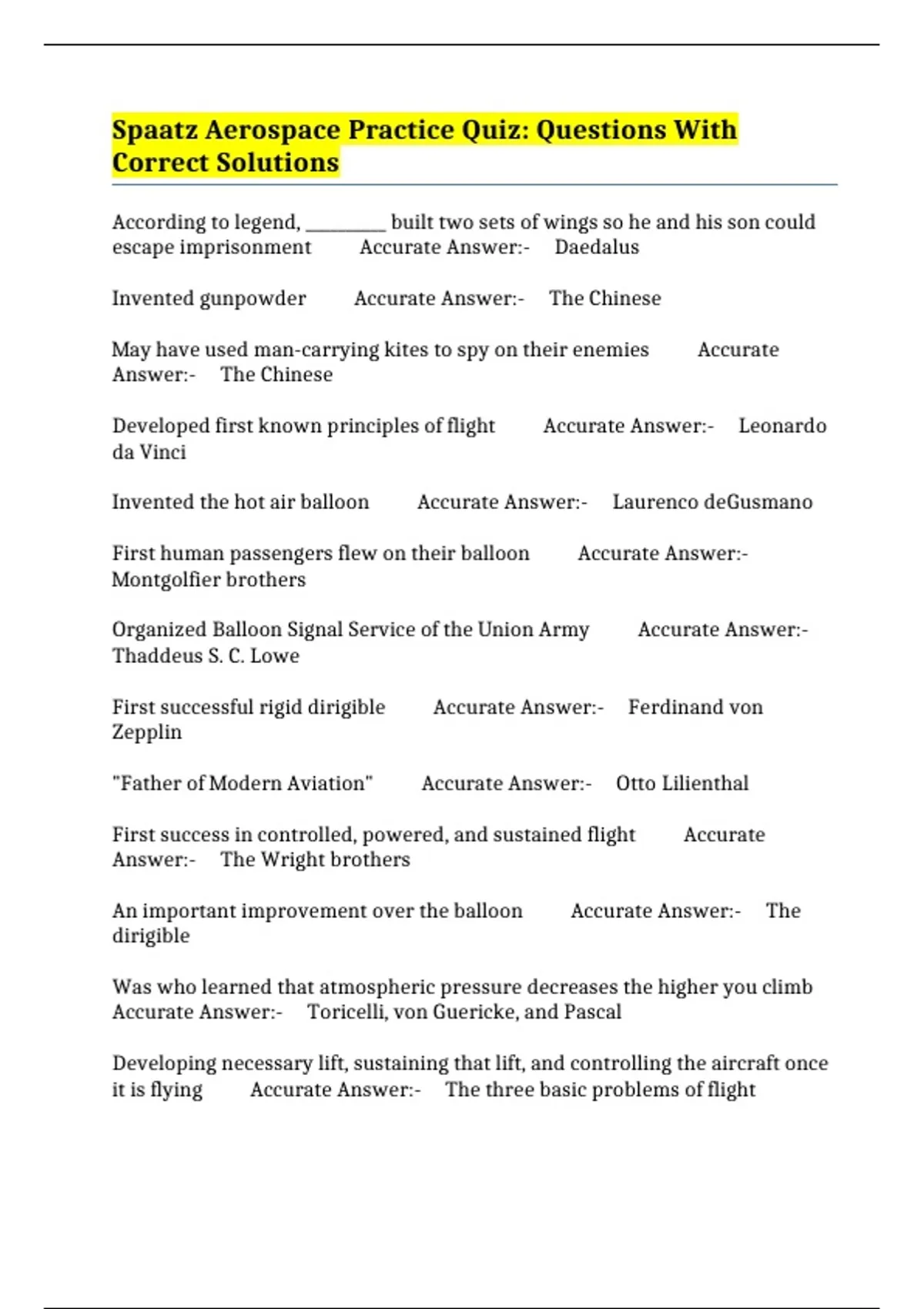 Developed first known principles of flight Accurate Answer:- Leonardo
