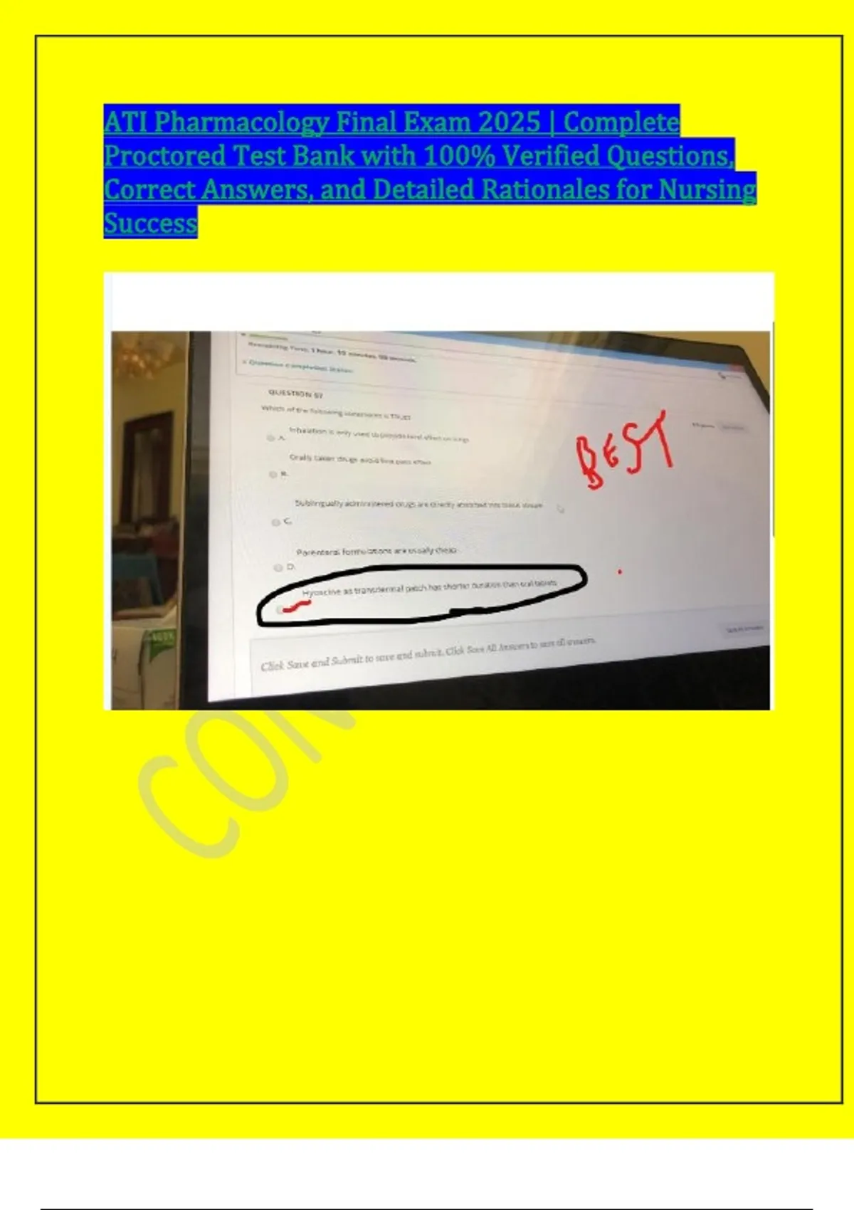 ATI Pharmacology Final Exam 2025 | Complete Proctored Test Bank with 100% Verified Questions, Correct Answers, and Detailed Rationales for Nursing Success