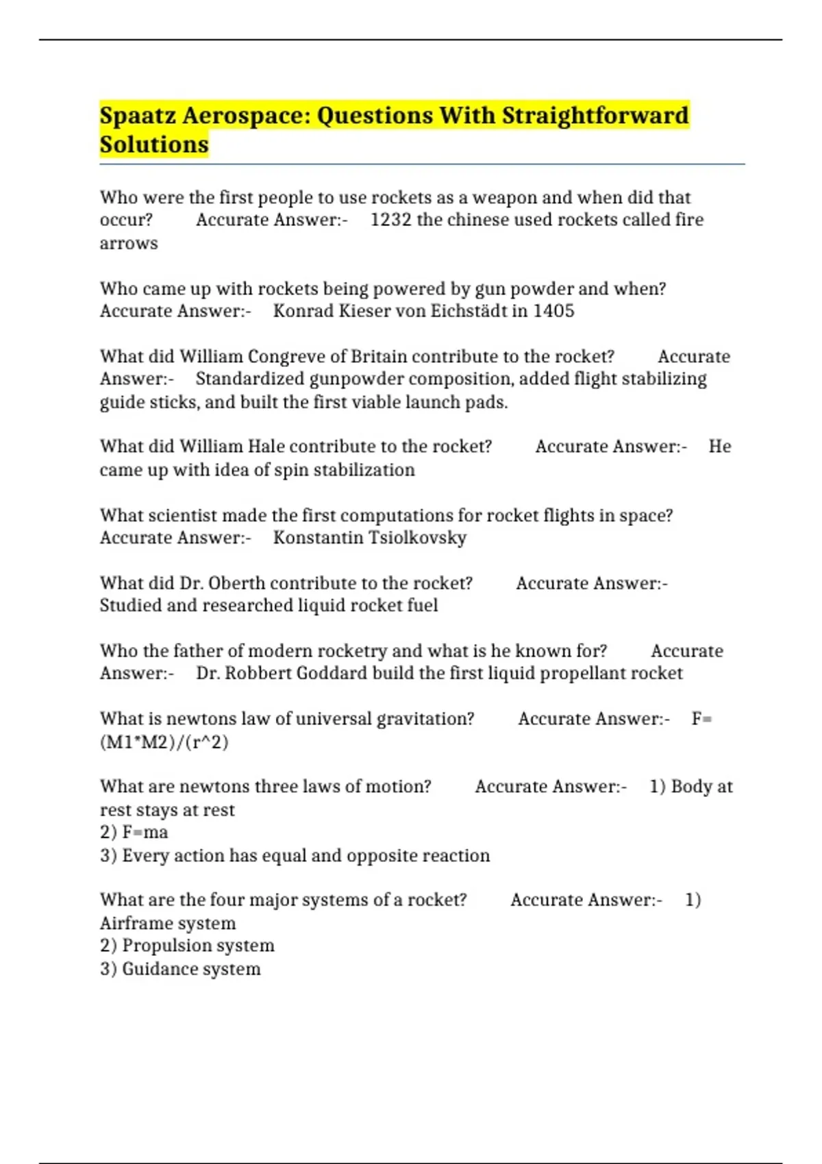 What are the four major systems of a rocket? Accurate Answer:- 1)