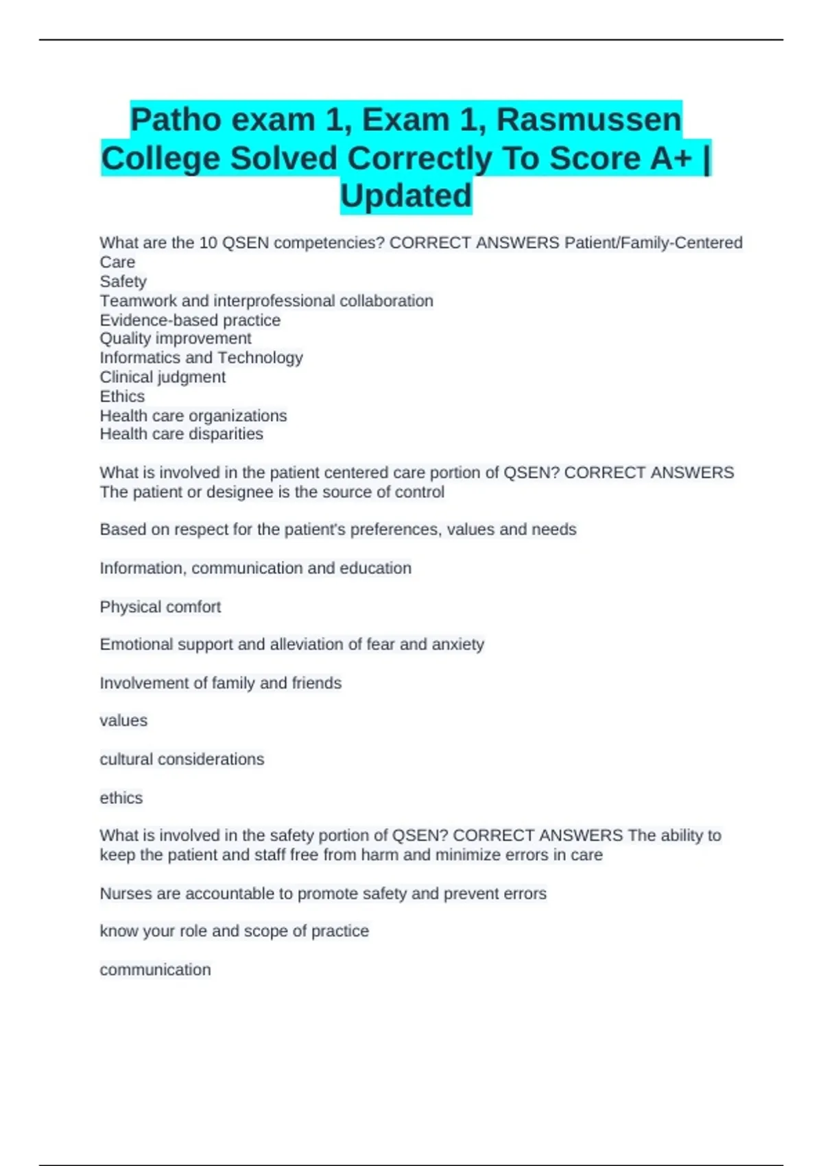 Patho exam 1, Exam 1, Rasmussen College Solved Correctly To Score A+ | Updated