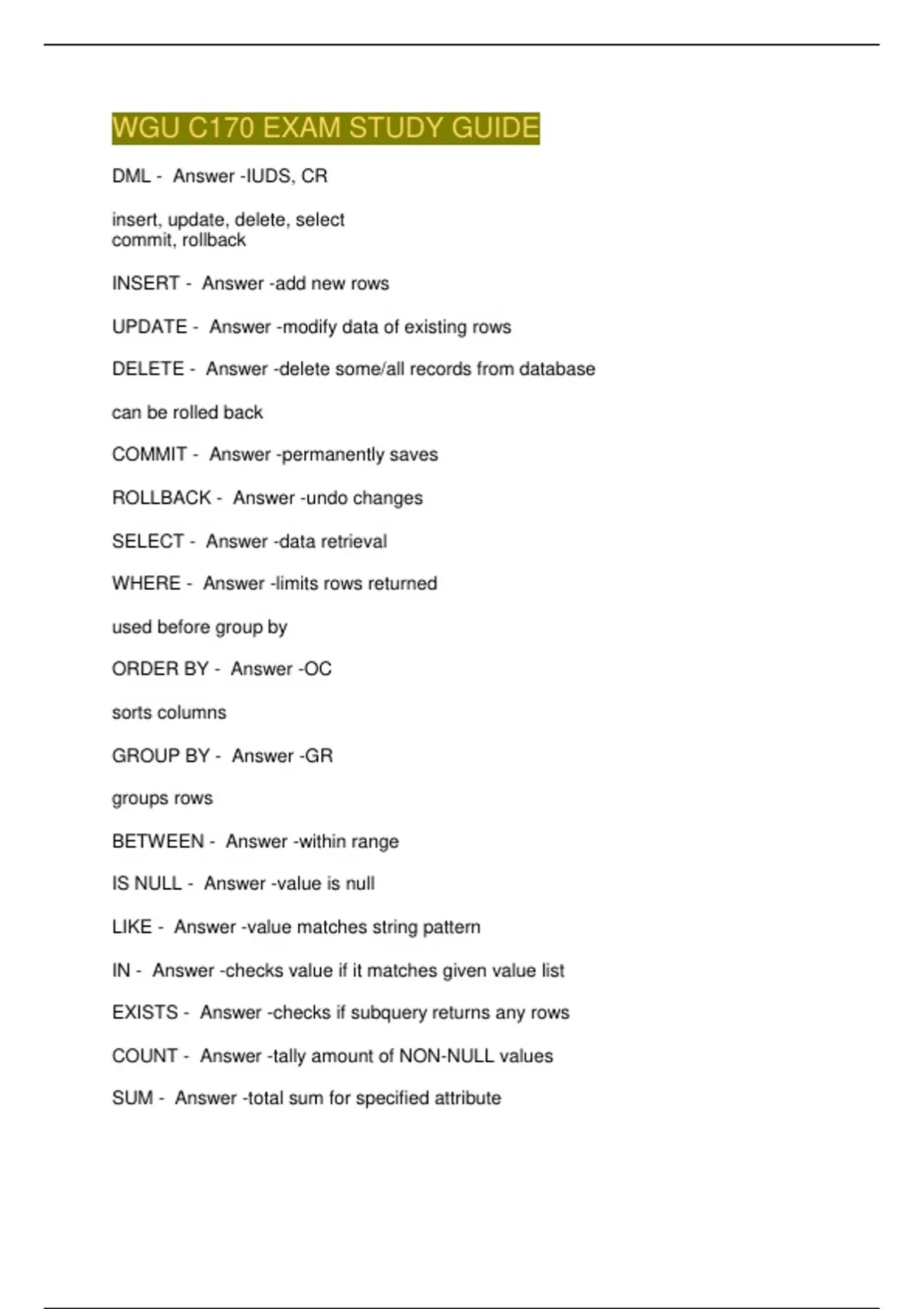 WGU C170 EXAM STUDY GUIDE