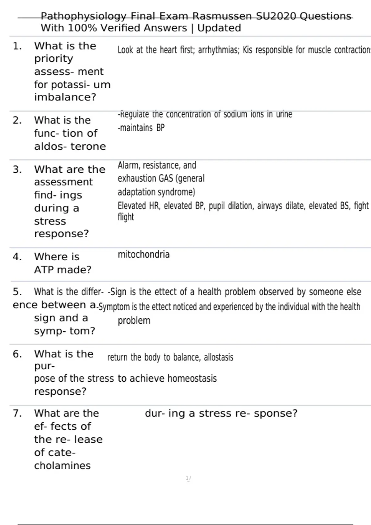 , Pathophysiology Final Exam Rasmussen SU2020 Questions