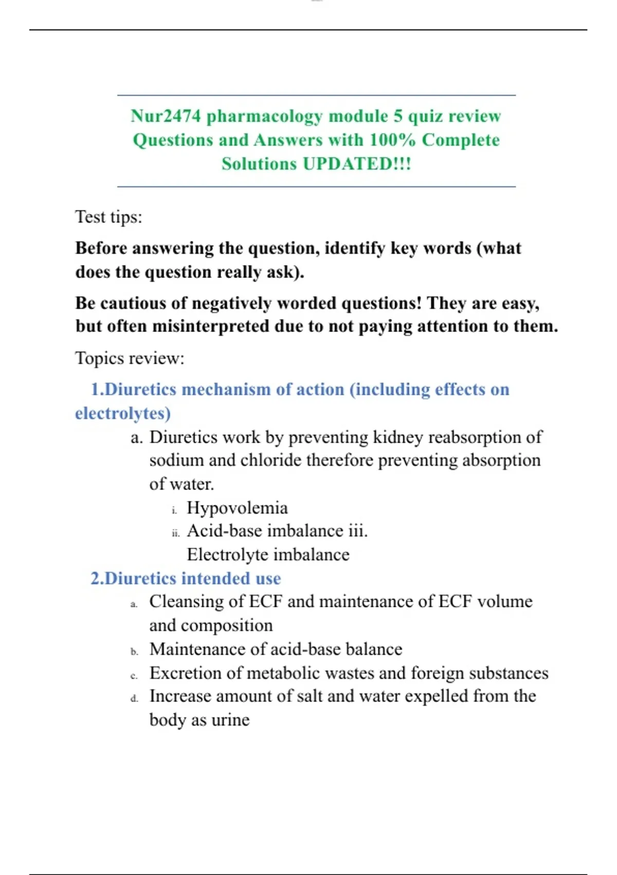 Nur2474 pharmacology module 5 quiz review Questions and Answers with 100% Complete Solutions UPDATED!!!