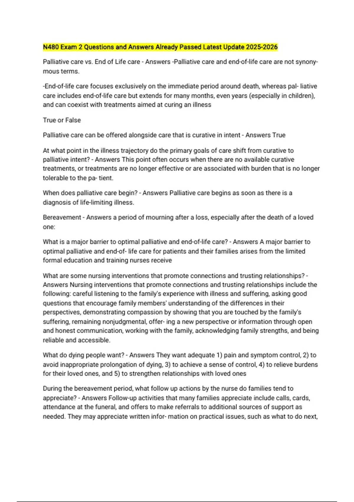 Palliative care vs. End of Life care - Answers -Palliative care and end-of-life care are not synony-