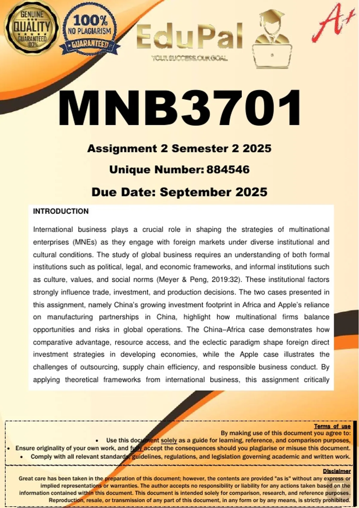 MNB3701 Assignment 2 (COMPLETE ANSWERS) Semester 2 2025 - DUE September 2025; 100% TRUSTED Complete, trusted solutions and explanations. For assistance, Whats-App 0.6.7-1.7.1-1.7.3.9. Ensure your success with us..