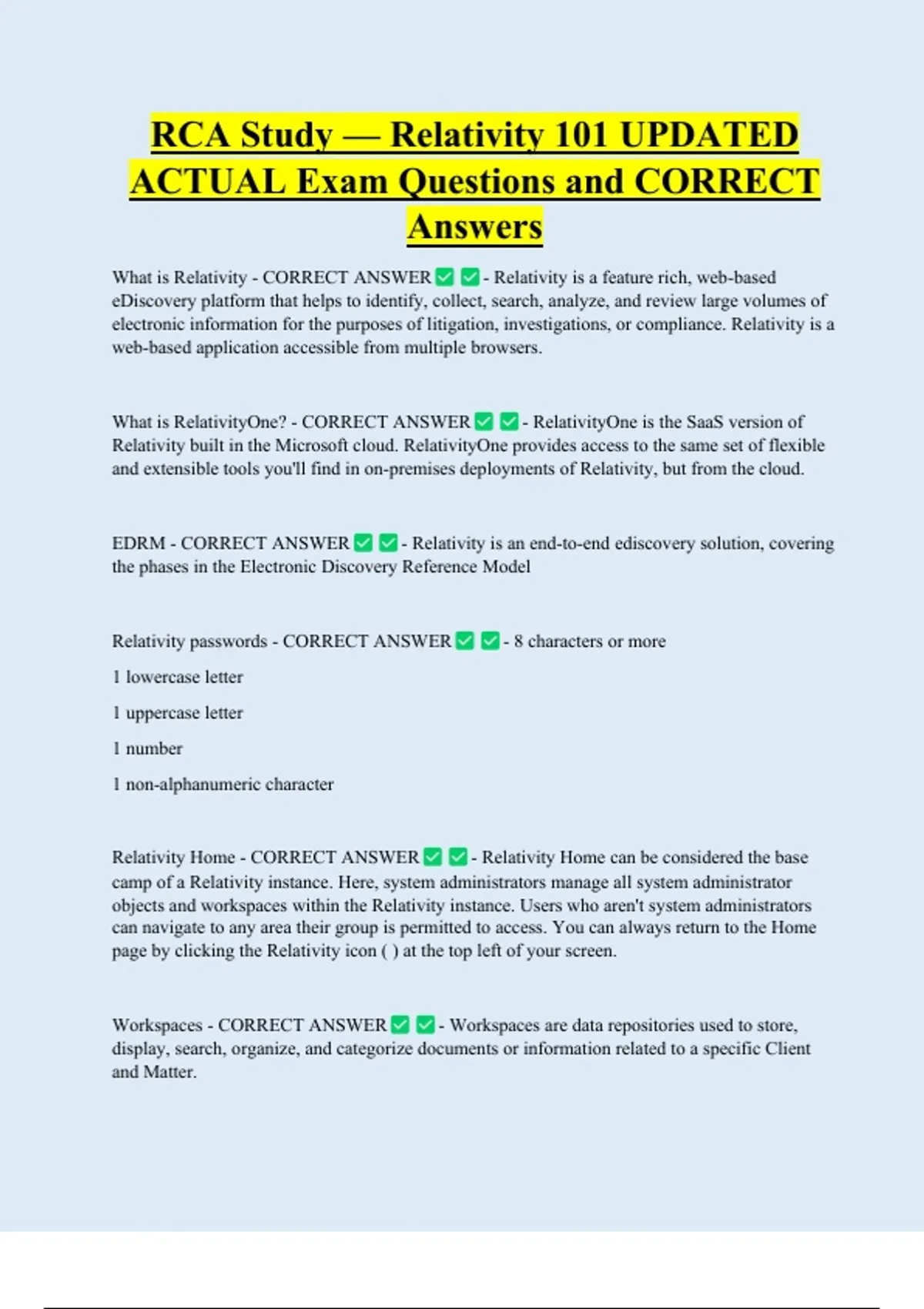 What is RelativityOne? - CORRECT ANSWER - RelativityOne is the SaaS version of