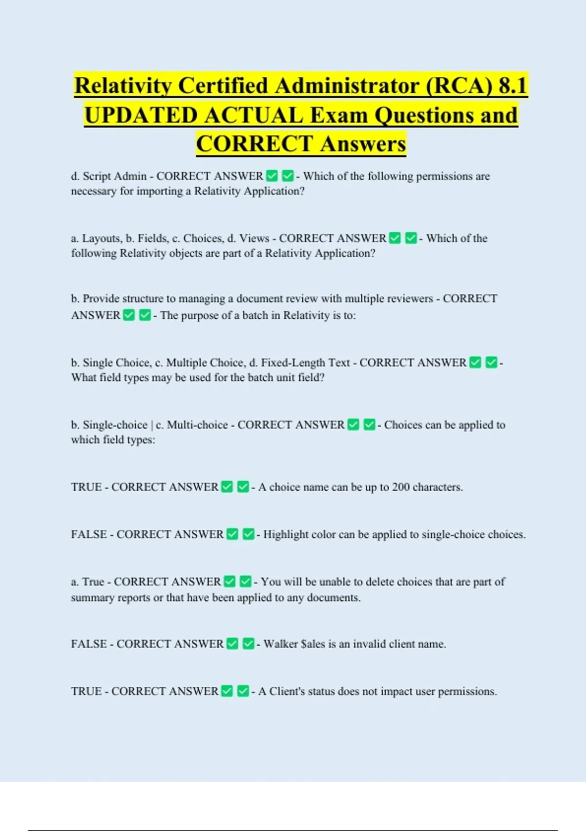 Relativity Certified Administrator (RCA) 8.1 UPDATED ACTUAL Exam Questions and CORRECT Answers