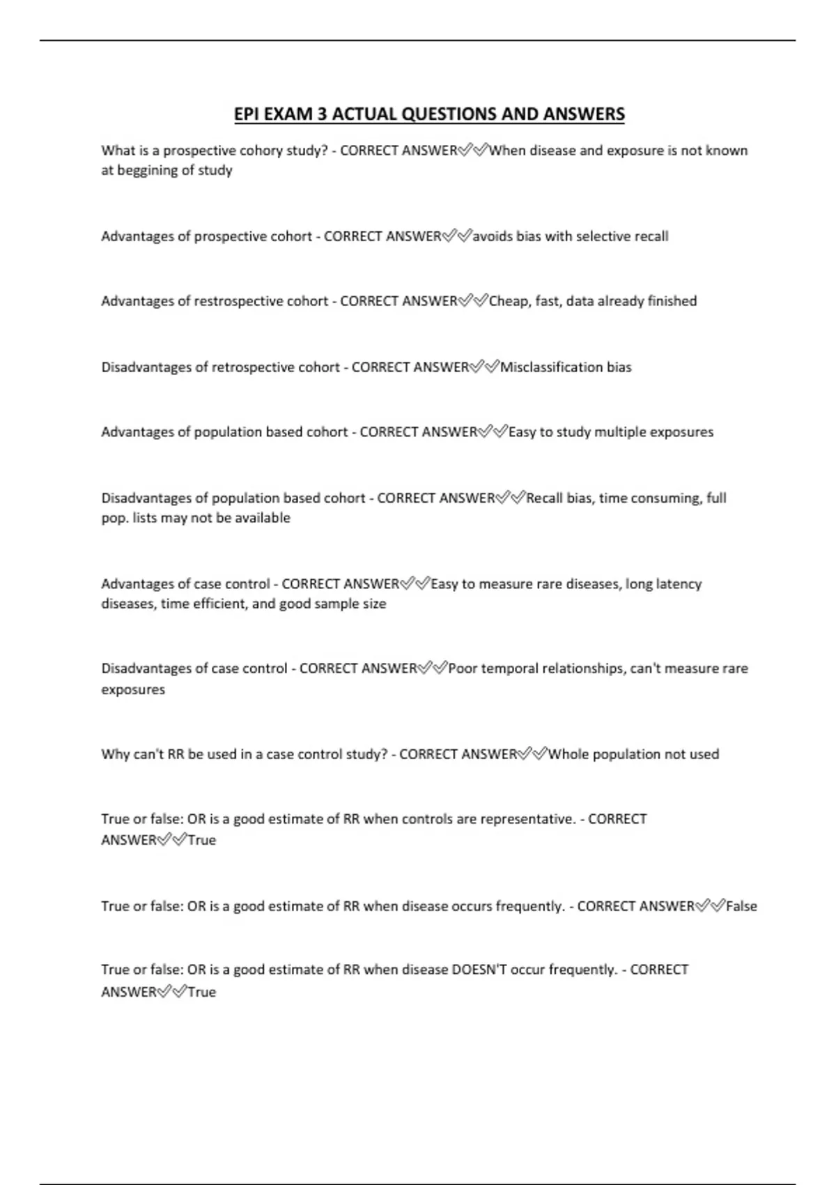 EPI EXAM 3 ACTUAL QUESTIONS AND ANSWERS