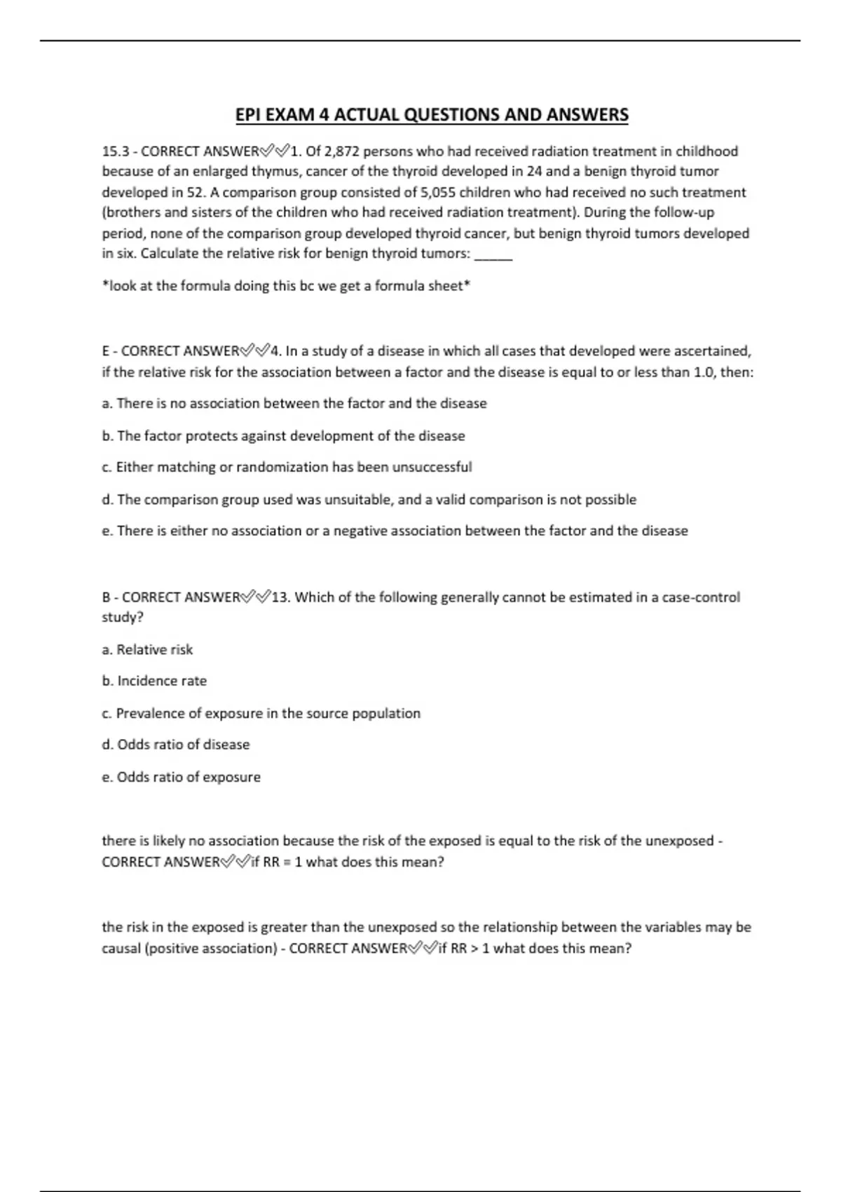 B - CORRECT ANSWER✅✅13. Which of the following generally cannot be estimated in a case-control