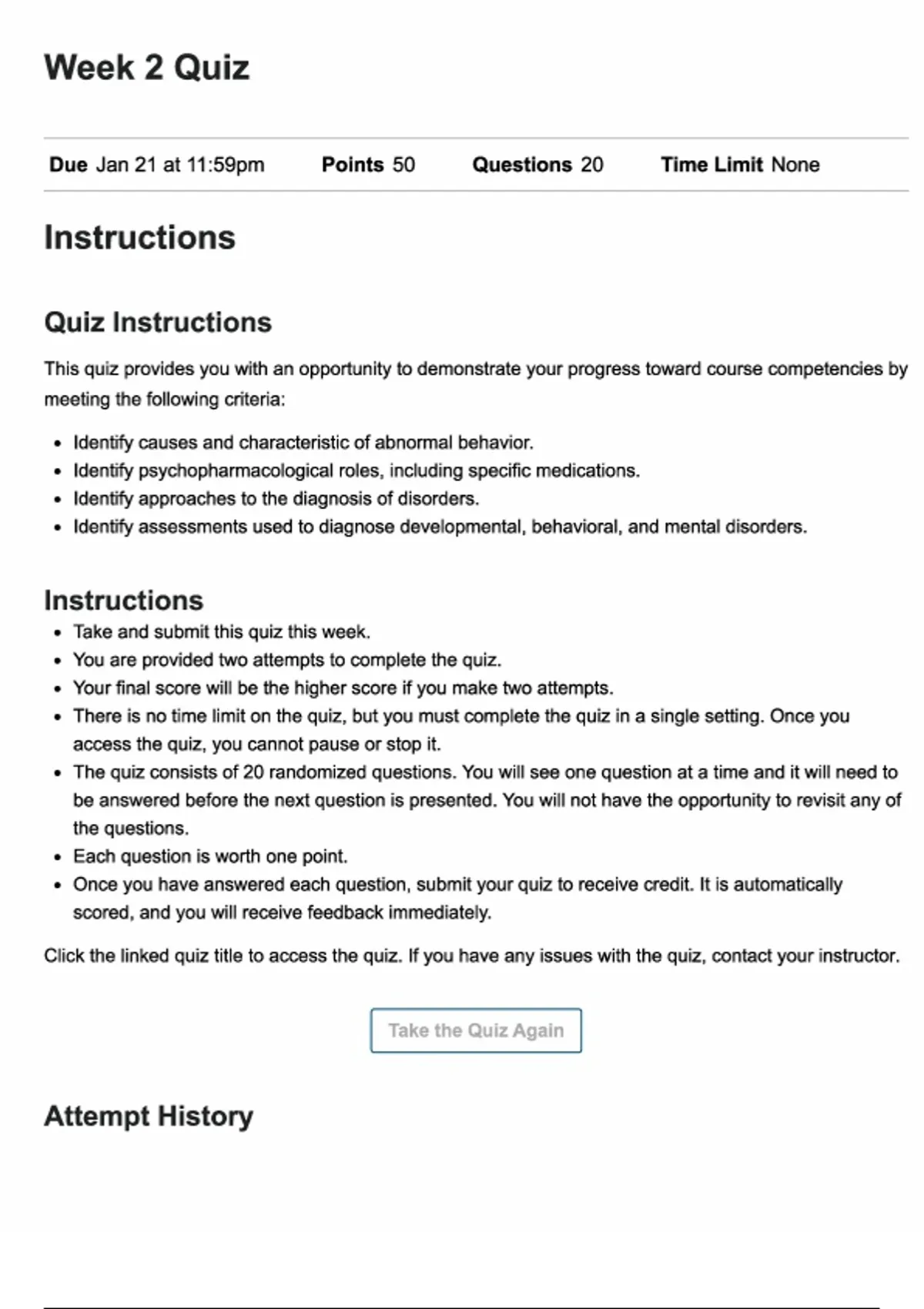 Click the linked quiz title to access the quiz. If you have any issues with the quiz, contact your instructor.
