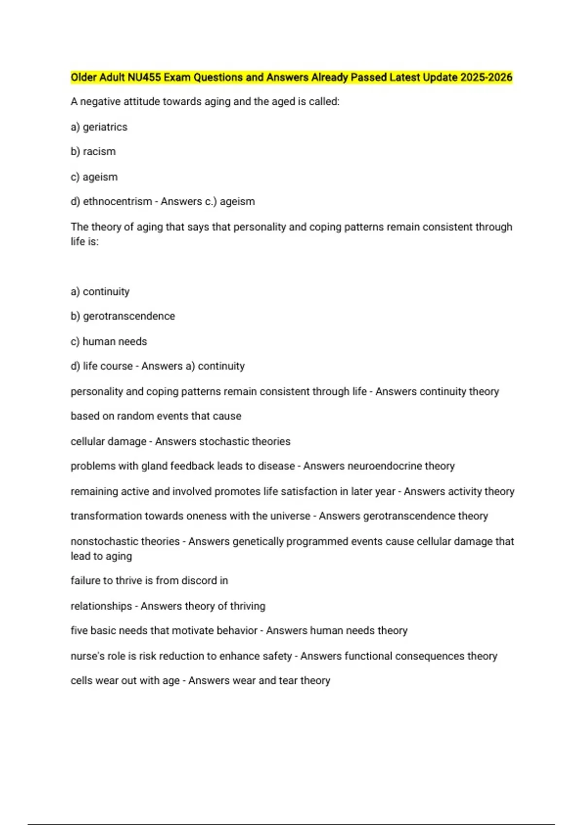 d) ethnocentrism - Answers c.) ageism