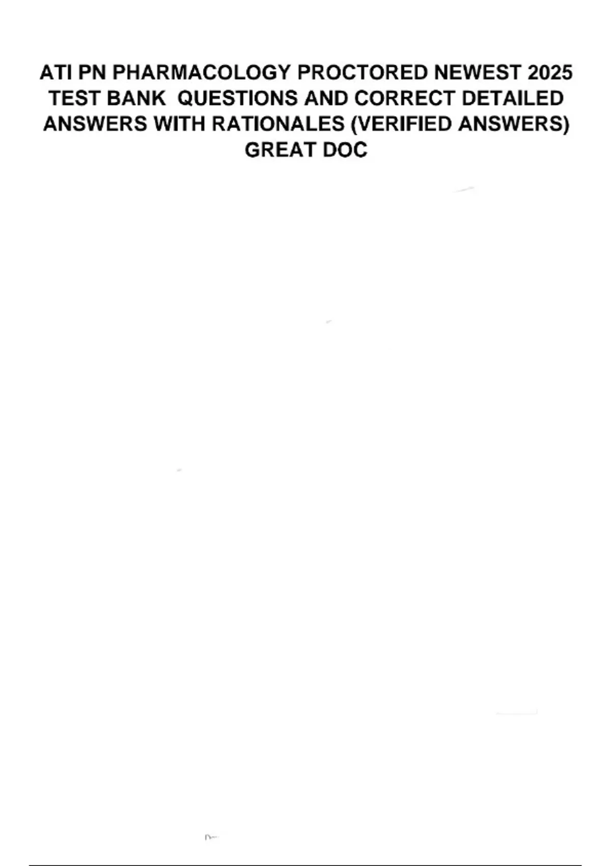 ATI PN PHARMACOLOGY PROCTORED NEWEST 2025 TEST BANK QUESTIONS AND CORRECT DETAILED ANSWERS WITH RATIONALES (VERIFIED ANSWERS)