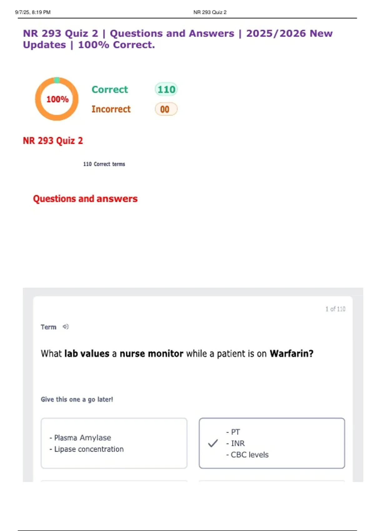 NR 293 Quiz 2 | Questions and Answers | 2025/2026 New