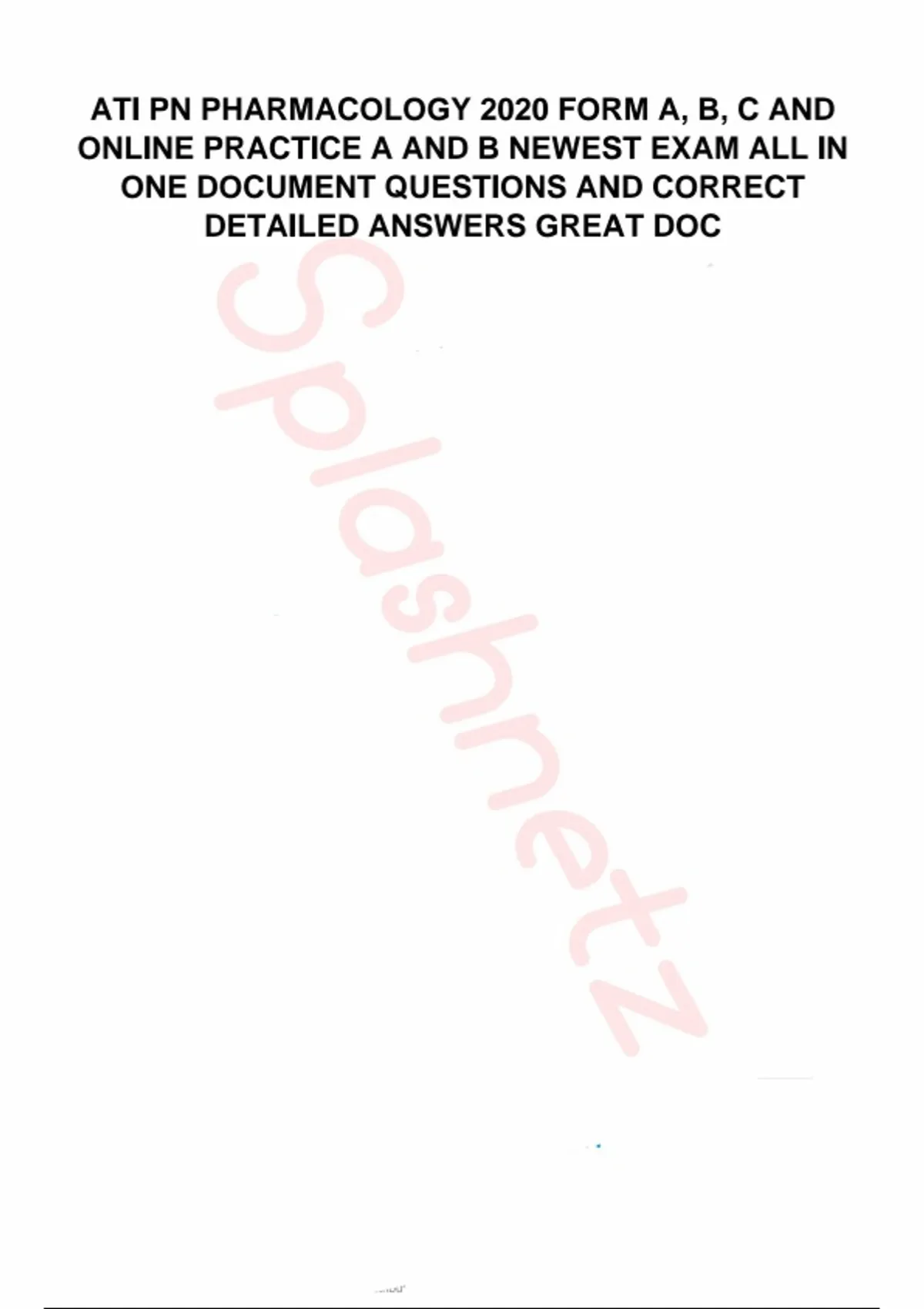 ATI PN PHARMACOLOGY 2020 FORM A, B, C AND ONLINE PRACTICE A AND B NEWEST EXAM ALL IN ONE DOCUMENT QUESTIONS AND CORRECT DETAILED ANSWERS