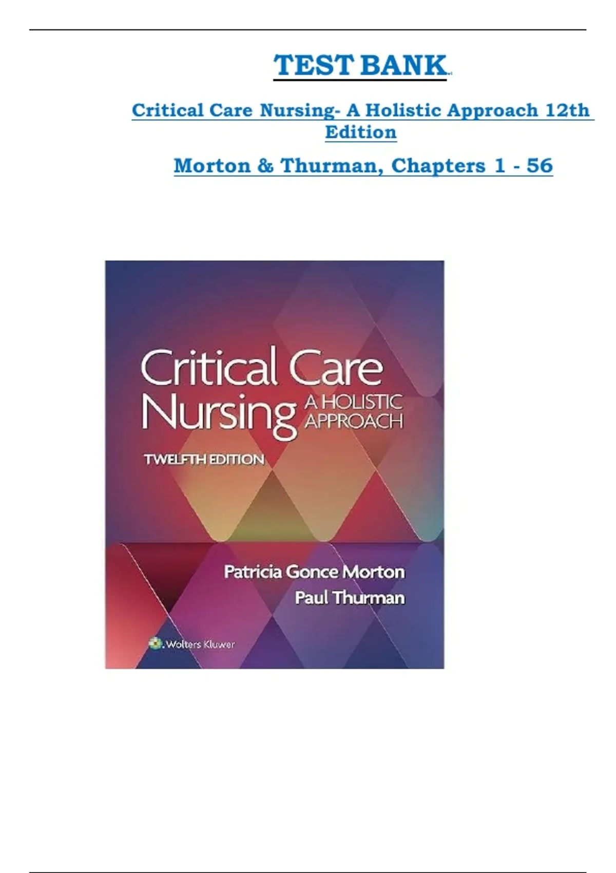Critical Care Nursing- A Holistic Approach 12th