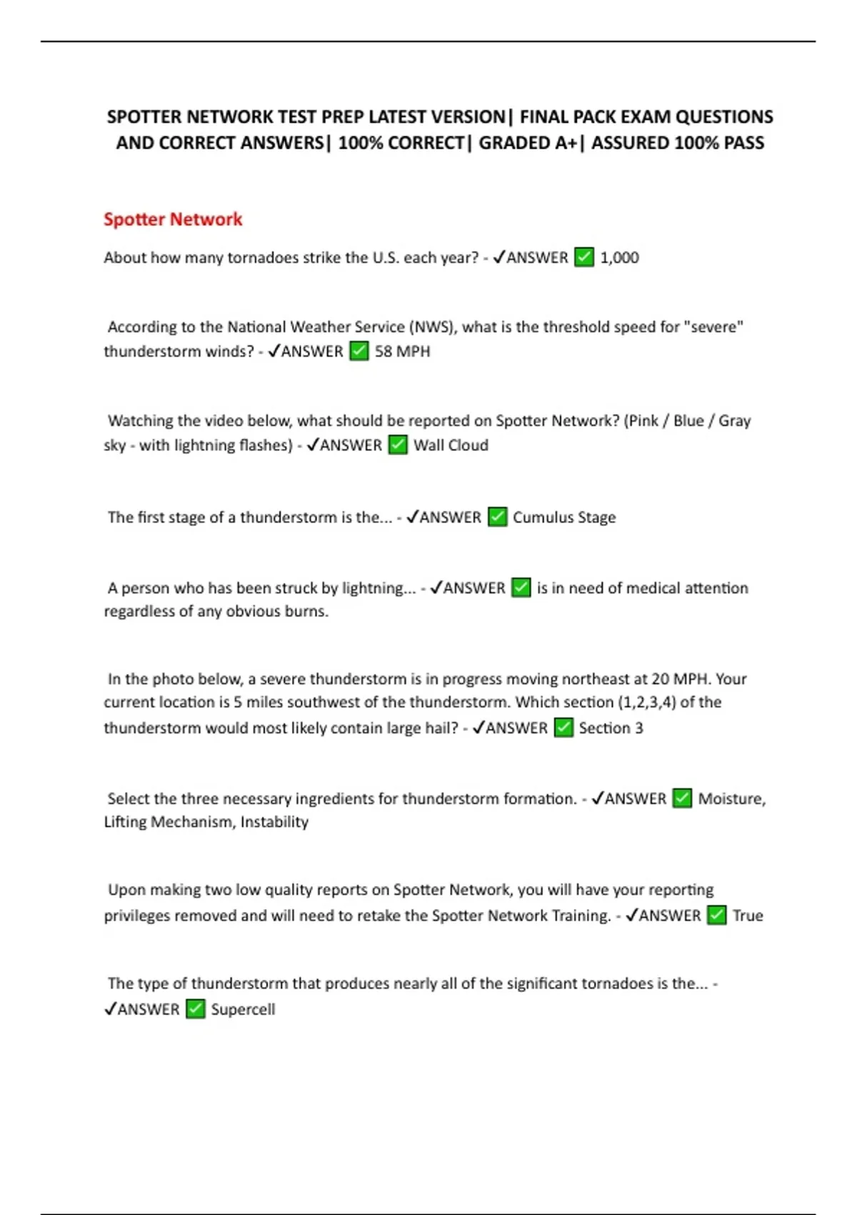 privileges removed and will need to retake the Spotter Network Training. - ✔ANSWER True