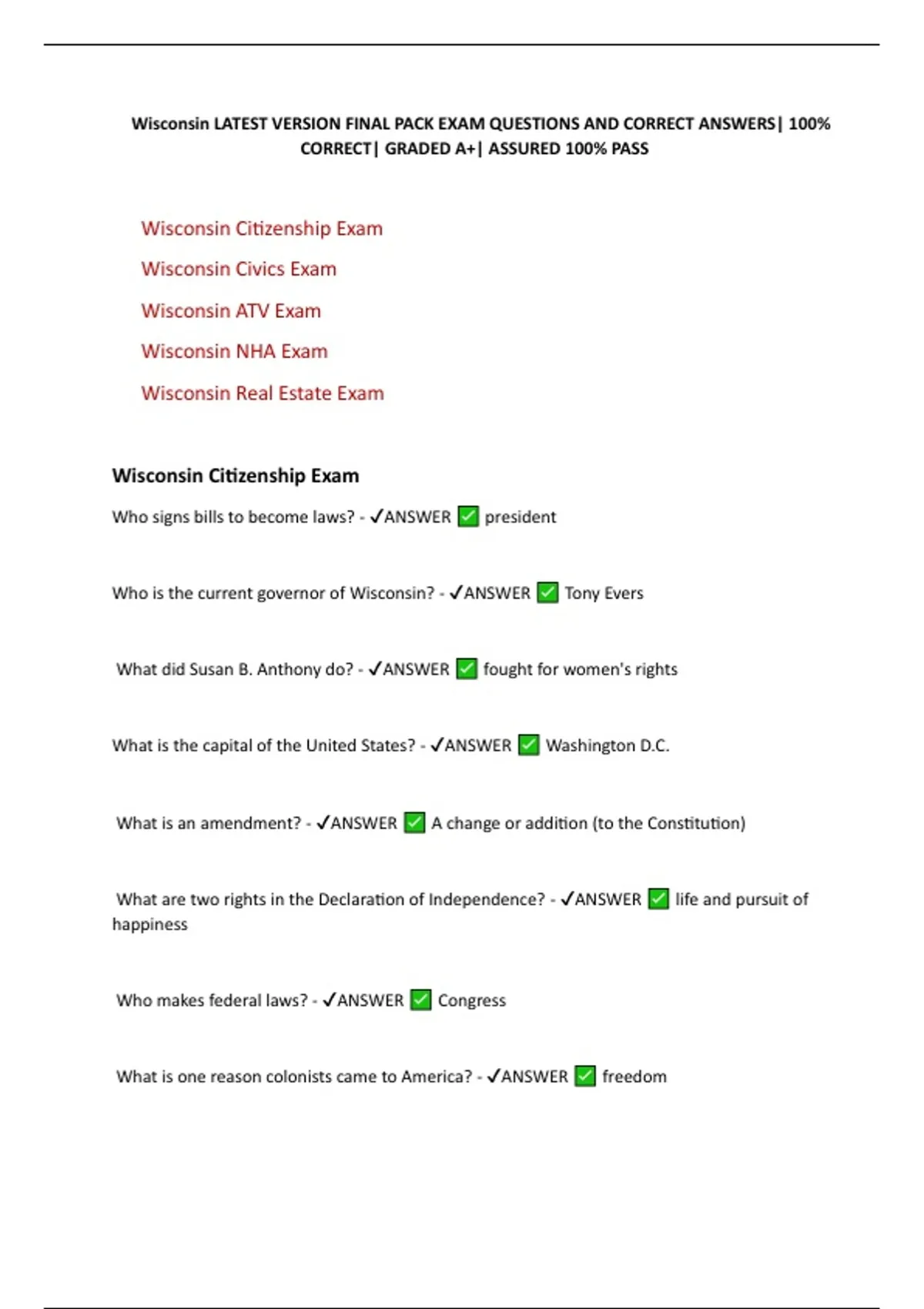 Wisconsin LATEST VERSION FINAL PACK EXAM QUESTIONS AND CORRECT ANSWERS| 100%